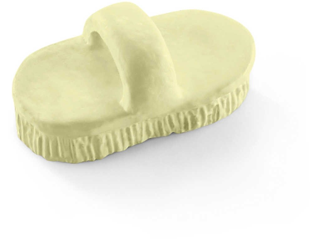 Kobyla dovoluje Sarah hřebelcovat a masírovat hříbě kartáčem.