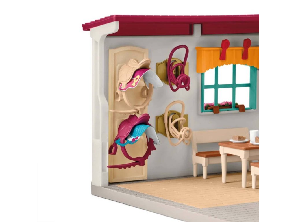Sedlárna z kolekce schleich® HORSE CLUB je dokonale vybavená. Kartáče a hřebla jen čekají, až s nimi budeš pročesávat srst svého koně, dokud nebude jen zářit.
