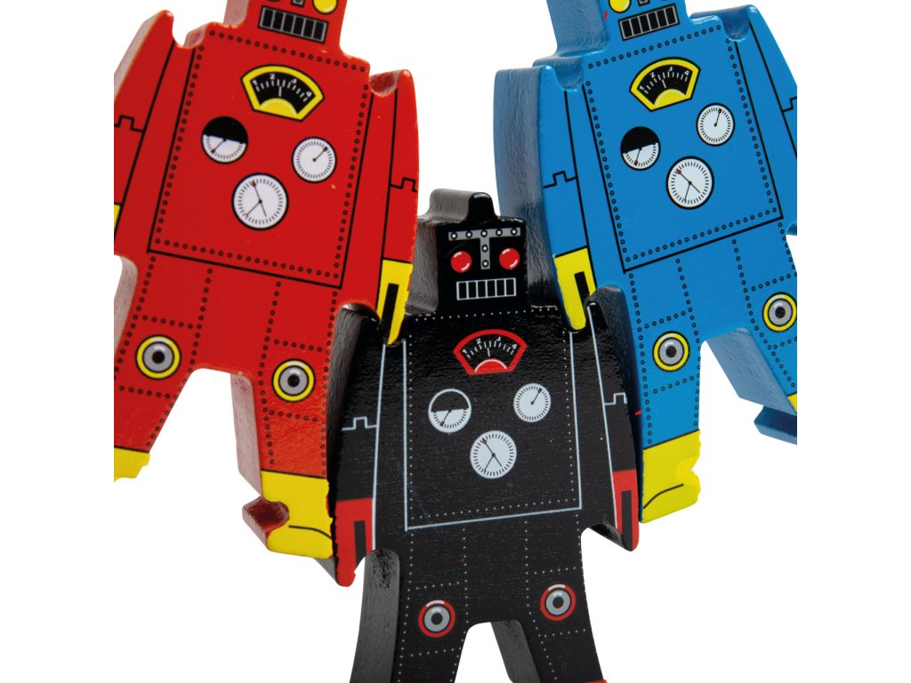 Udělejte si test dovednosti při stavění a skládání robotů. Zjistěte, kolik způsobů můžete najít, jak roboty poskládat, ale zároveň je udržet v rovnováze. Jsou navrženi tak, aby se daly spojovat více způsoby, je to test kreativity, představivosti, dovednosti a rovnováhy. Roboti Vám poskytnou nekonečnou stavební zábavu. Hra obsahuje 9 dřevěných robotů, všichni mají odolný, netoxický povrch. Hlavní vlastnosti: podporuje kreativitu, představivost, dovednosttrénuje trpělivost a logické myšlenívyrobeno z netoxických materiálů9 ks robotů - nekonečná zábava
