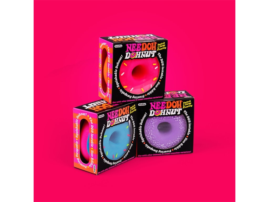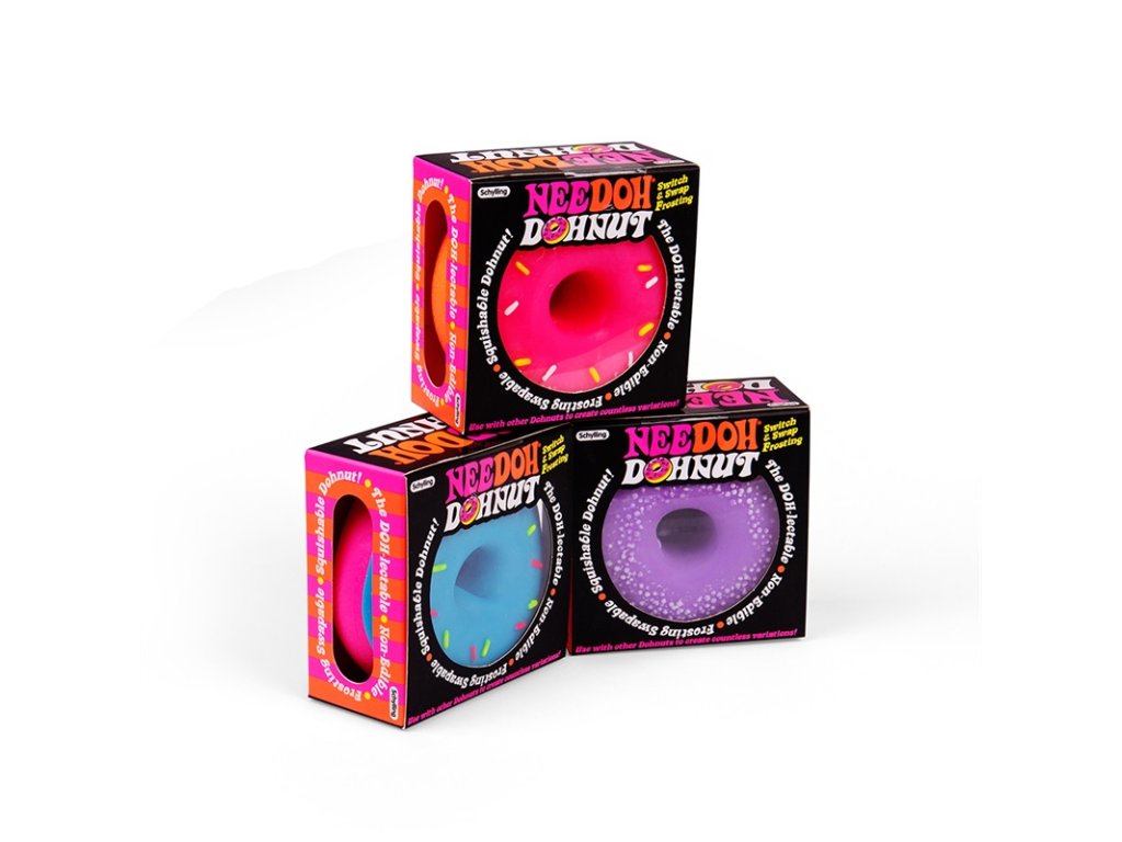 Cena je uvedená za 1 ks. K dispozici jsou tři barevné varianty. Každá barva má různé druhy polev. Pokud máte zájem o konkrétní druh polevy, uveďte prosím do poznámky. V opačném případě zasíláme náhodně. NeeDoh Dohnut je super "sladká" antistresová hračka, která děti zabaví na celé hodiny. Donuty jsou vyplněny super měkkou, netoxickou směsí. Vhodné pro osoby s ADD, ADHD, OCD, autismem a úzkostí. Vymačkejte napětí. S vyměnitelnou polevou si přizpůsobíte svůj dohnut tak, aby se Vám líbil (poleva je vzájemně kombinovatelná s ostatními donuty). Ideální také jako dárek. Vnější materiál produktů NeeDoh je termoplastická guma, vnitřní náplň je polyvinylalkohol, oba materiály jsou netoxické. Náplní je PVA, který se používá také jako potah ve farmaceutických přípravcích a doplňcích stravy. Hlavní vlastnosti: vhodné pro osoby s ADD, ADHD, OCD, autismem a úzkostívyrobeno z netoxického materiáluvyměnitelná polevavhodné i na cesty