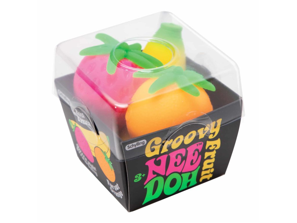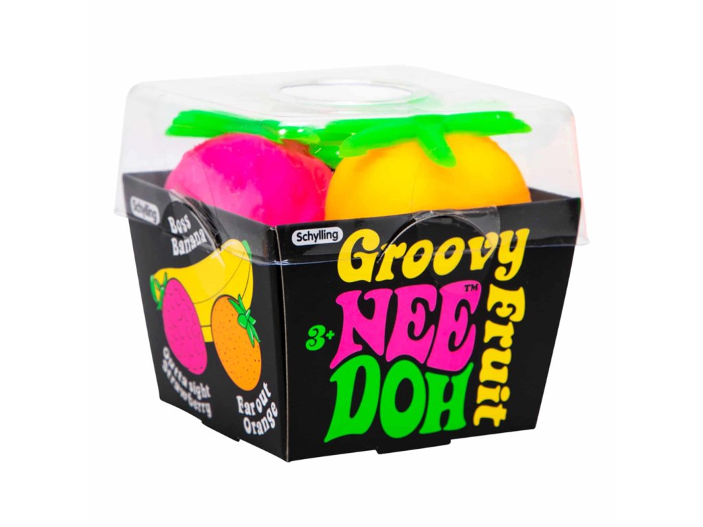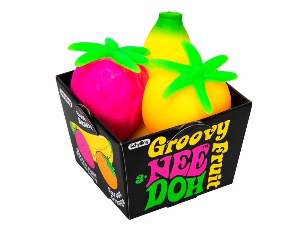Schylling's Groovy Fruit NeeDoh je plný ovocné zábavy. Tahle jedinečná antistresová a neposedná hračka obsahuje banán, jahodu a pomeranč, které lze mačkat, tahat a trhat. Ideální pro zábavu na cestách nebo jako prostředek k úlevě od úzkosti. Nee Doh je vyroben z netoxického materiálu podobného těstu, který se vždy vrátí do původního tvaru. Dá se mačkat, tahat a rozbíjet. Ideální pro zábavu na cestách nebo jako prostředek k úlevě od úzkosti. Groovy Fruit také pomáhá dětem soustředit se a udržet pozornost. Vnější materiál produktů NeeDoh je termoplastická guma, vnitřní náplň je polyvinylalkohol, oba materiály jsou netoxické. Náplní je PVA, který se používá také jako potah ve farmaceutických přípravcích a doplňcích stravy. Hlavní vlastnosti: vhodná pro osoby s ADD, ADHD, OCD, autismem a úzkostíantistresový míček i hračkapodporuje soustředěnost a pozornostvyrobeno z netoxického materiáluideální na cesty