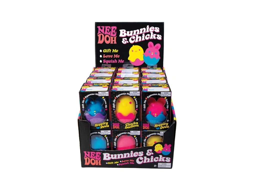 Cena je uvedena za 1 ks. K dispozici je 6 variant: modré kuřátko, žluté kuřátko, růžové kuřátko, modrý zajíček, růžový zajíček a žlutý zajíček. Pokud máte zájem o konkrétní motiv, doplňte prosím zvolenou variantu do poznámky v objednávce. Bude-li skladem, rádi Vám vyhovíme. V případě nezadání konkrétního motivu zasíláme náhodně. Hrajte si a mačkejte! Zajíček Hoppity Doos a kuřátko Chicka DeeDoos má roztomilý obličej, zářivé barvy, měkký povrch a odnímatelnou základnu. Účinně napomáhá ke snižování stresu a úzkostí a k lepší koncentraci a produktivitě dětí. Tím, že zapojí smysly a zaneprázdní ruce, uklidní se a lépe se soustředí na daný úkol. Zvířátko je naplněno bezpečnou netoxickou pružnou hmotou podobnou těstu. Perfektní malý dárek pro jakoukoliv příležitost. Vnější materiál produktů NeeDoh je termoplastická guma, vnitřní náplň je polyvinylalkohol, oba materiály jsou netoxické. Vnitřní náplň PVA se používá také jako potah ve farmaceutických přípravcích a doplňcích stravy. Hlavní vlastnosti: na výběr ze 6 motivůnapomáhá ke snižování stresu a úzkostívyrobeno z netoxického materiáluvhodné jako dárek