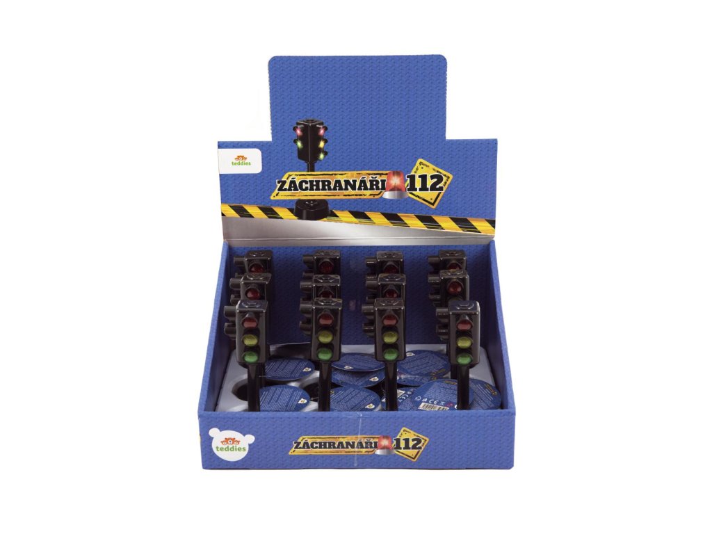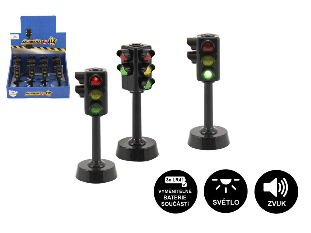 Semafor funkční plast 12cm na baterie se světlem se zvukem 12ks v boxu