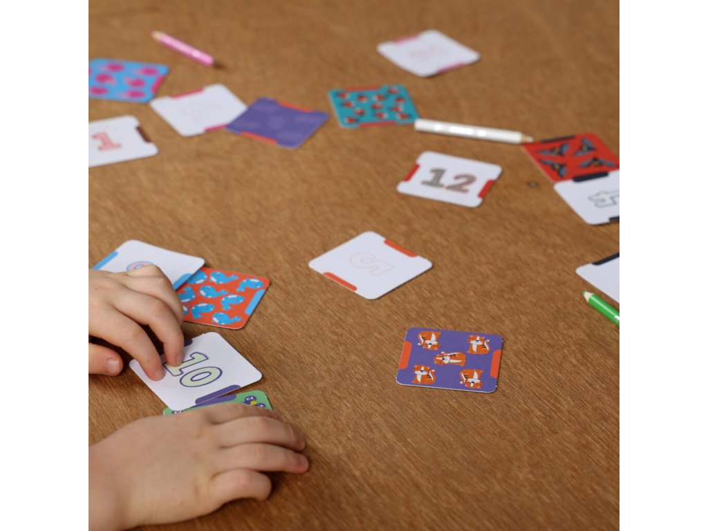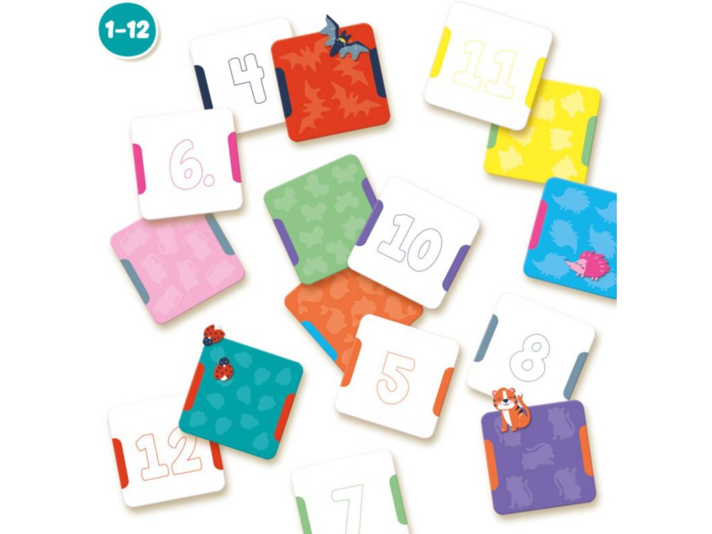 Obsah balení: 24 karet s čísly (1-12) a figurkami, 8 pastelek, samolepky, návod