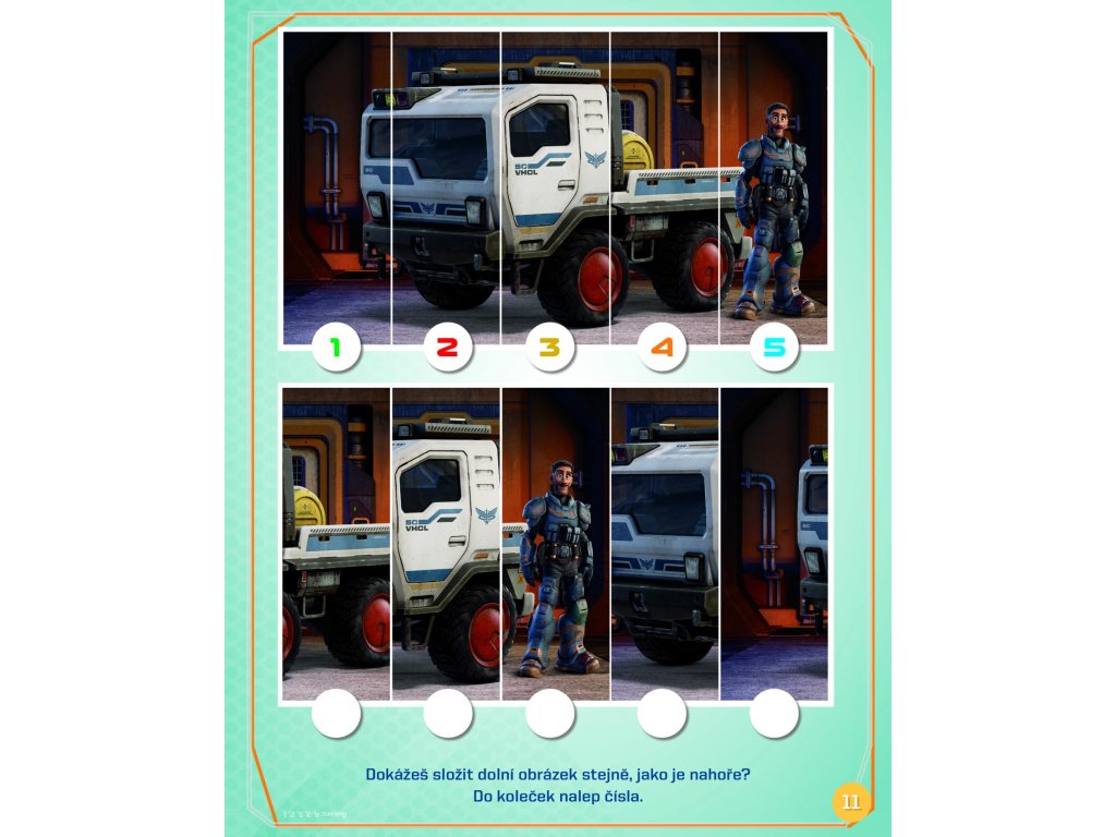 Samolepková knížka obsahuje 16 stran zábavných aktivit a více než 60 samolepek k dolepení a ozdobení. Tak neváhej, vyber správné samolepky pomoz Rakeťákovi dokončit misi.