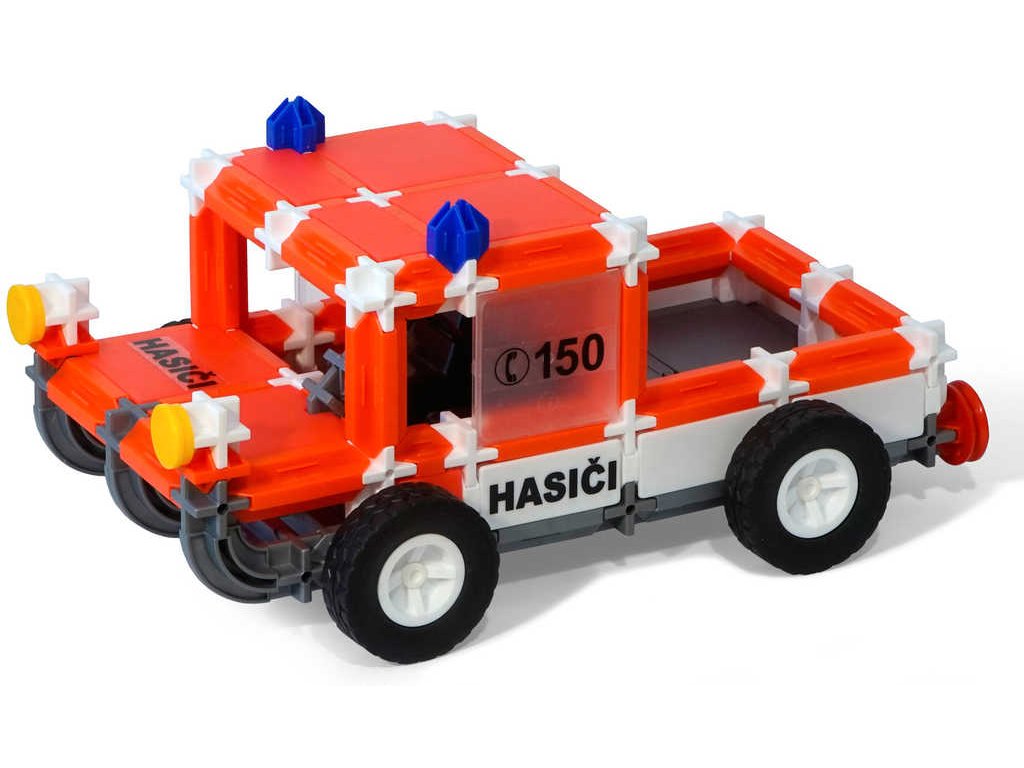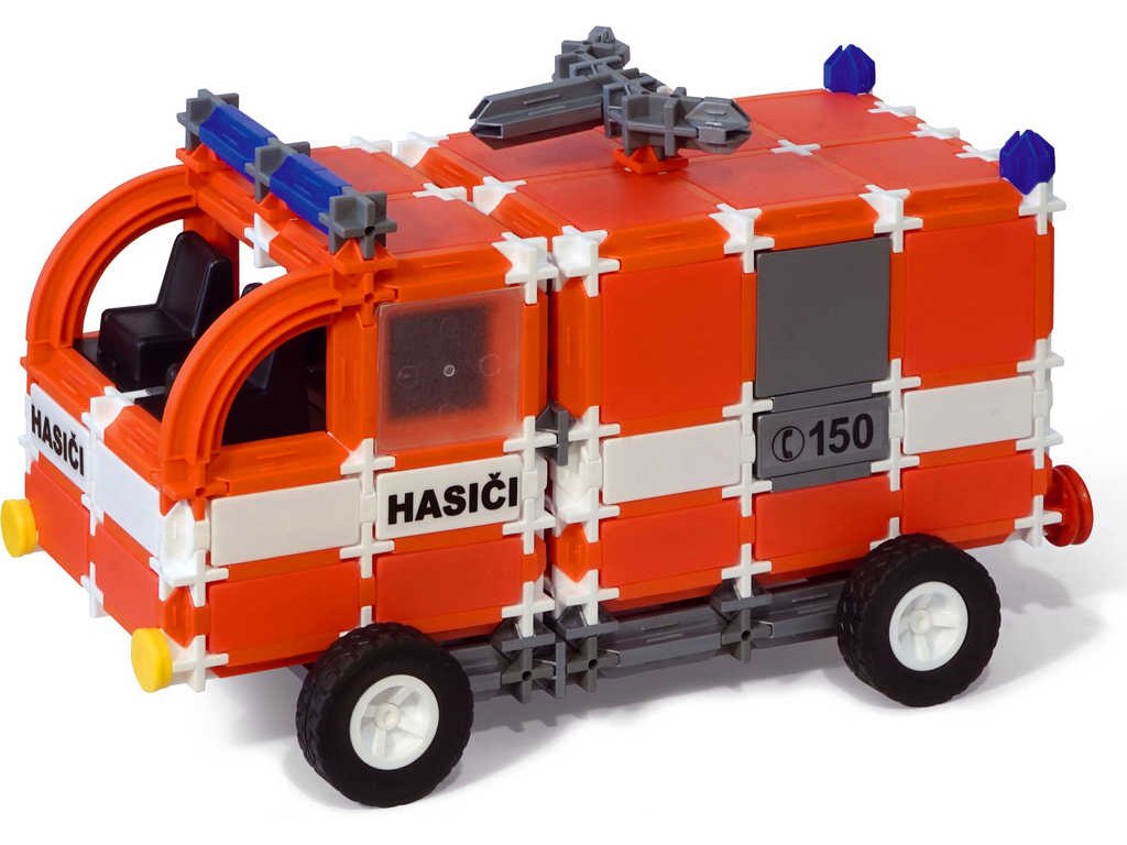 plošinou nebo vůz s velkou cisternou, která se navíc dá i natáčet. Najdete v ní i dílky pro sestavení velitelského, neboli technického vozu, díky kterému budete zaručeně na místě nehody jako první. Všechny modely si