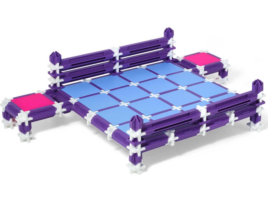 pohovkou pro dvě a tři figurky. Co by bylo bydlení bez ložnice? Ani zde nepřijdete zkrátka, můžete si sestavit tzv. letiště – širokou postýlku pro pohodlné spaní. Malé stavitelky určitě ocení i malé noční stolky u postele, kam