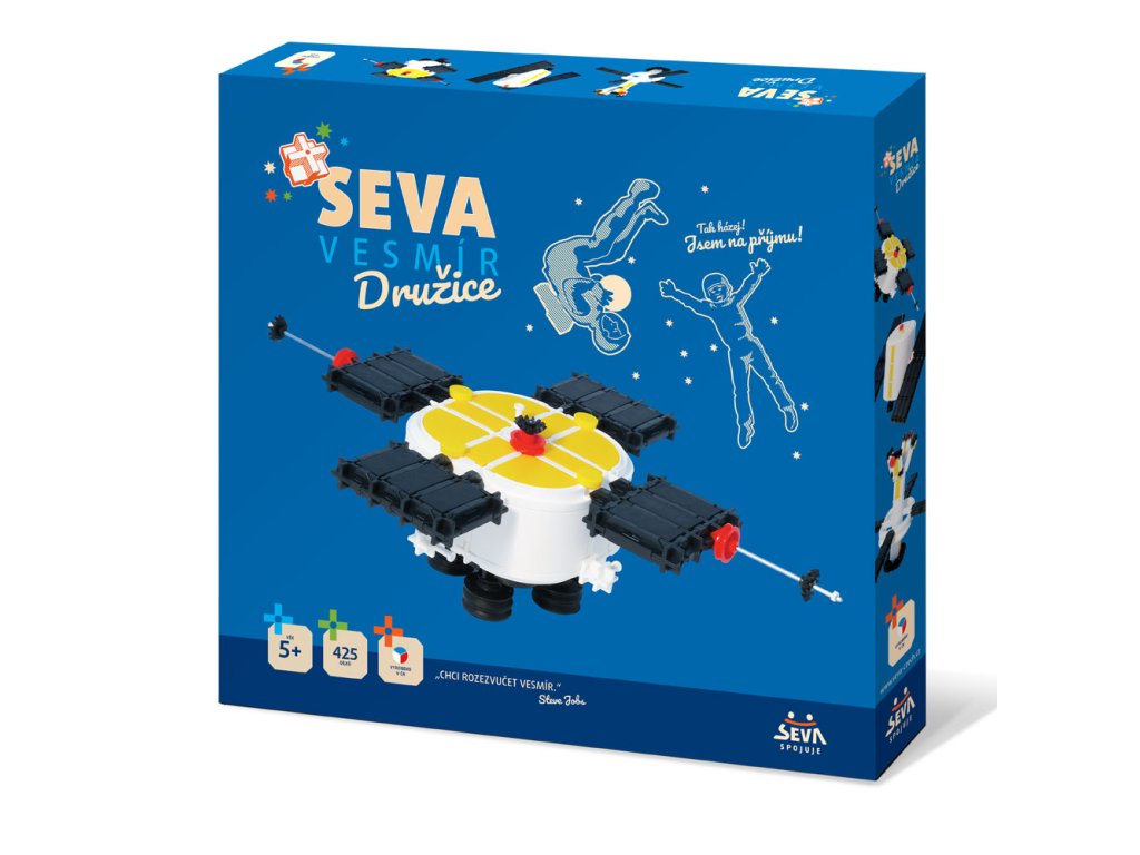 "Dědo, postavíme družici a prozkoumáme s ní celý vesmír!" Se stavebnicí SEVA VESMÍR - družice sestavíte tři různé družice. A nejen ty. Složit si můžete vše co Vás napadne. U stavebnice SEVA se fantazii meze nekladou.
