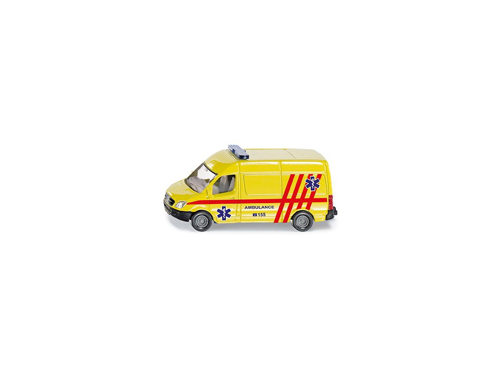 SIKU 0809 - Česká verze žlutého lékařského výjezdového vozidla s nápisem "Ambulance". Kvalitně zpracovaný model z kovu a plastu.