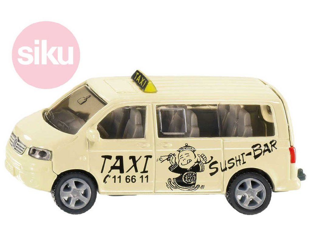 SIKU 1360 auto taxislužba VW Volkswagen Transporter - Detailní kovový model skutečného traktoru z kovu. Model má otevírací zadní dveře.