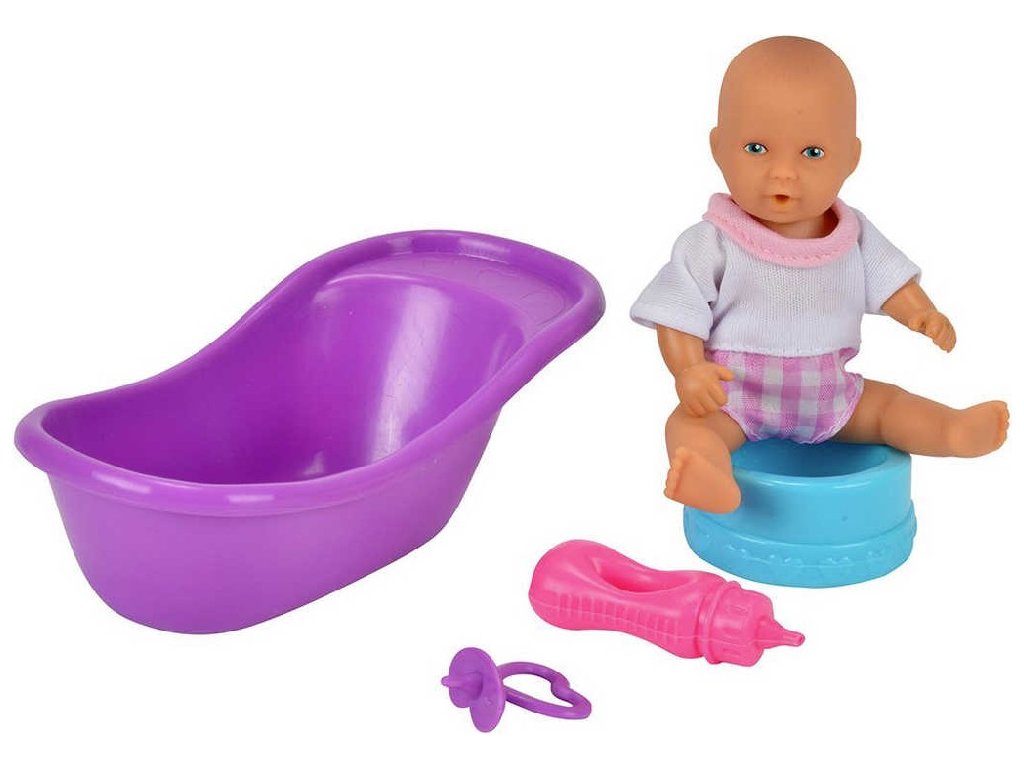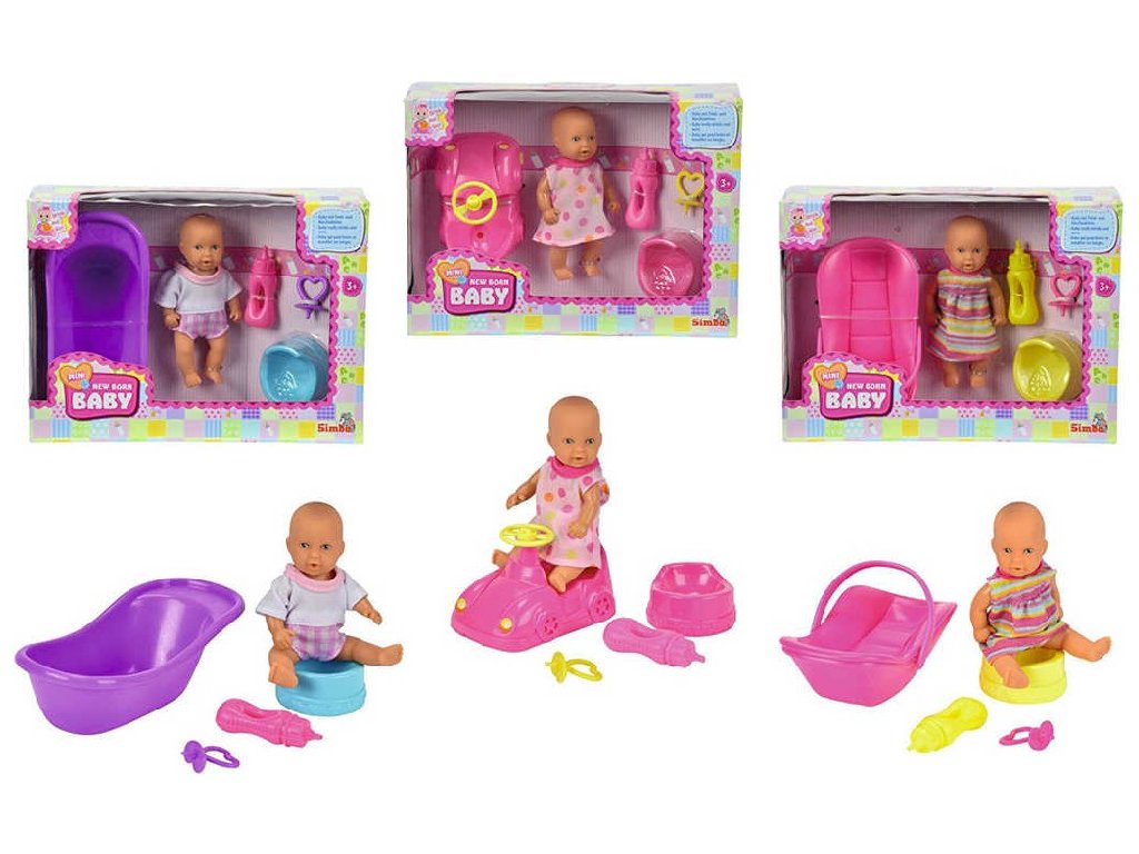 SIMBA New Born Baby miminko 12cm s příslušenstvím pije a čůrá 3 druhy