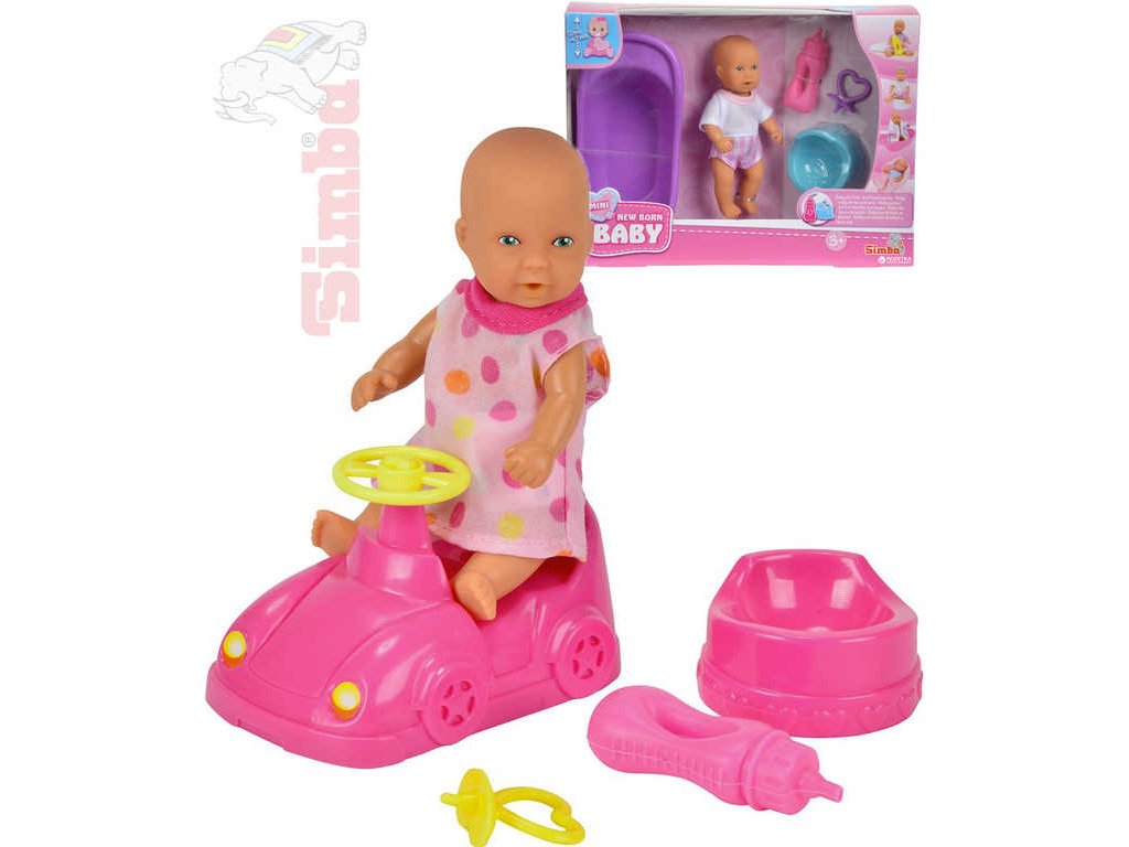 Dětská panenka New Born Baby se spoustou zajímavých doplňků. Panenka umí dokonce pít a čůrat. Součástí balení jsou v závislosti na variantě provedení: láhev, nočník, dudlík, vanička, autíčko nebo autosedačka. Vaše malá holčička se bude cítit jako opravdová maminka. Ve třech variantách provedení.