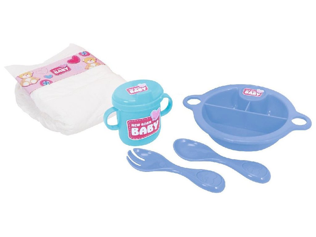 Obsah balení: panenka, dudlík, nočník, plena, talířek s příborem, hrníček