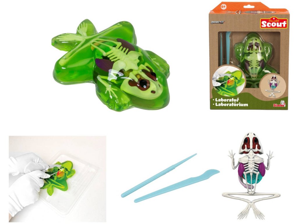 Malá laboratoř pro pitvu žáby, mloka či netopýra, jejichž kosti a orgány jsou pokryty slizem. Součástí je lupa a pinzeta a sáček s práškem pro vytvoření opětovného slizu: Po dokončení první pitvy vložte orgány a kostru zpět do blistru, promíchejte prášek s vodou, zalijte vzniklým slizem a nechte ztuhnout v chladu. Pitvu pak lze provést podruhé. Velikost 8 cm.