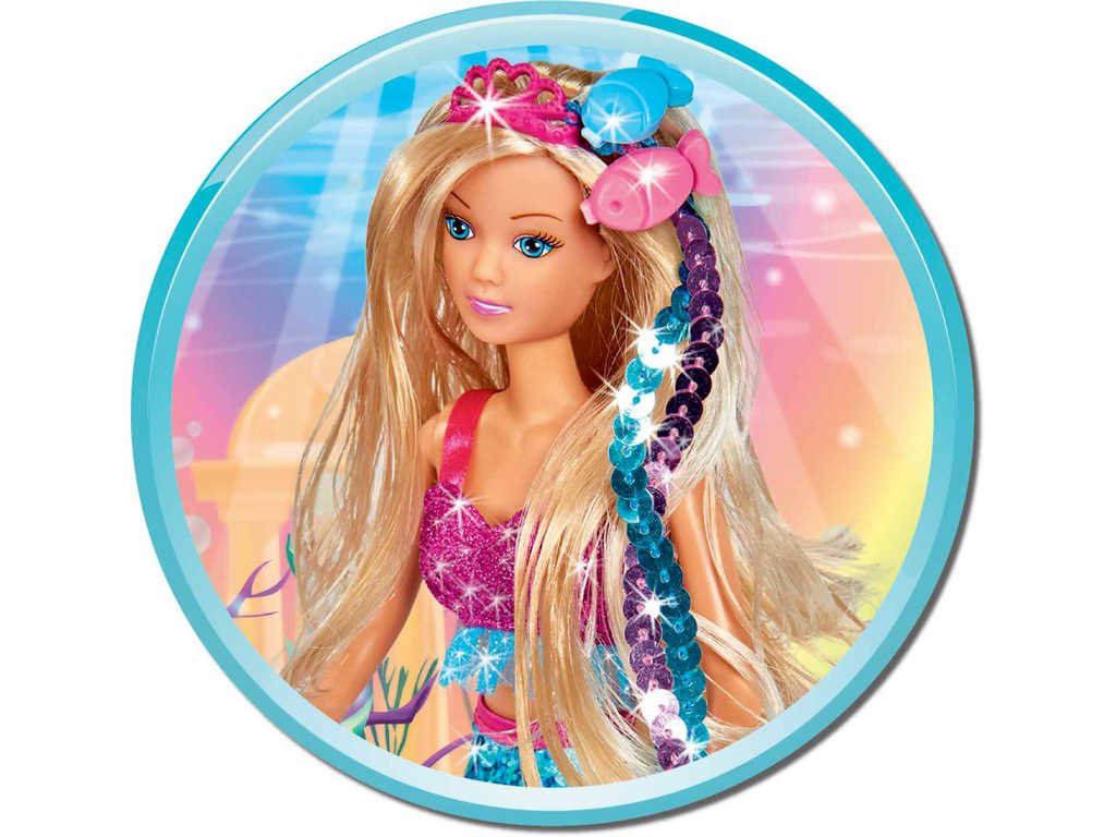 Krásná a třpytivá panenka Steffi jako mořská panna připluje do dívčích snů. Její mořská ploutev je poseta barevnými flitry, které hází různé odlesky. Navíc se flitry dají změnit snadným otočením na druhou