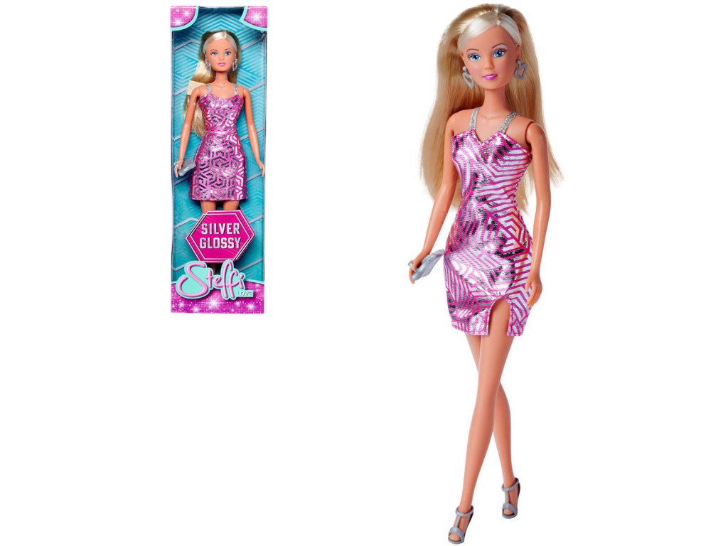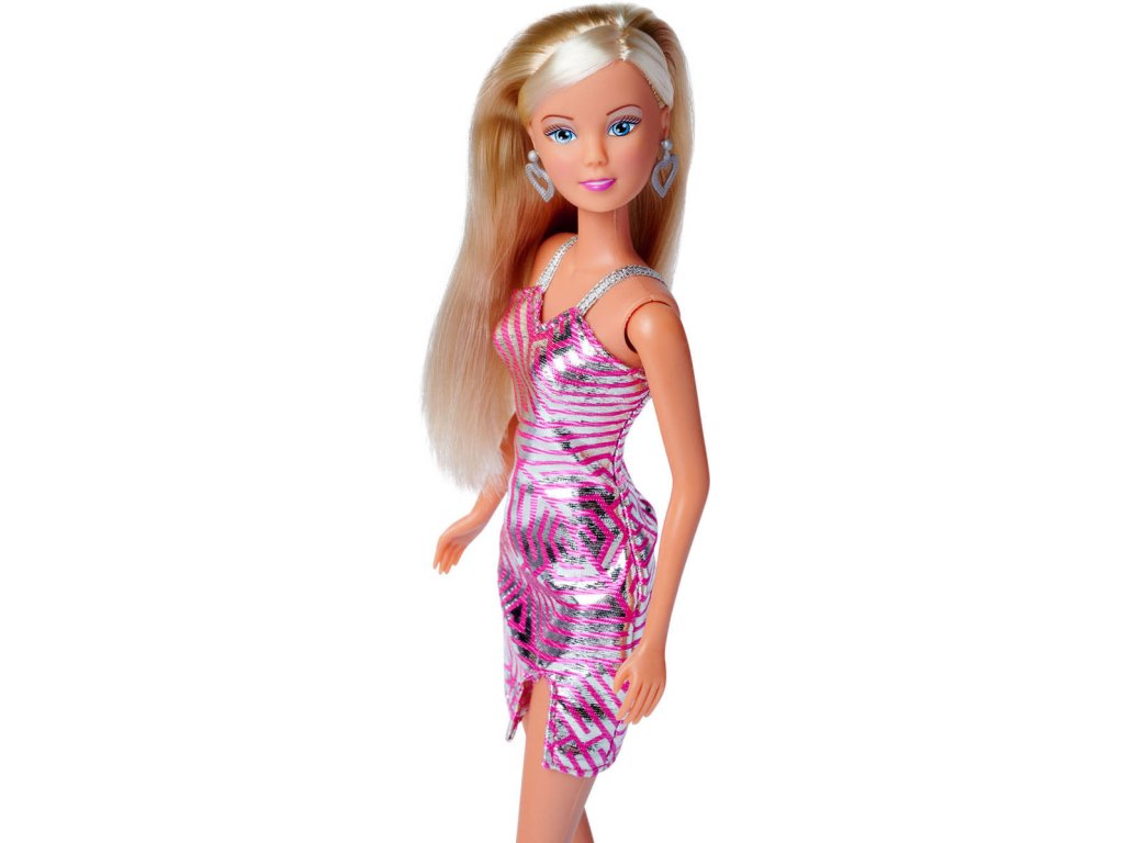 Panenka Steffi Love v efektních třpytivých šatech s náušnicemi a sponou, 2 druhy. Velikost panenky 29cm.