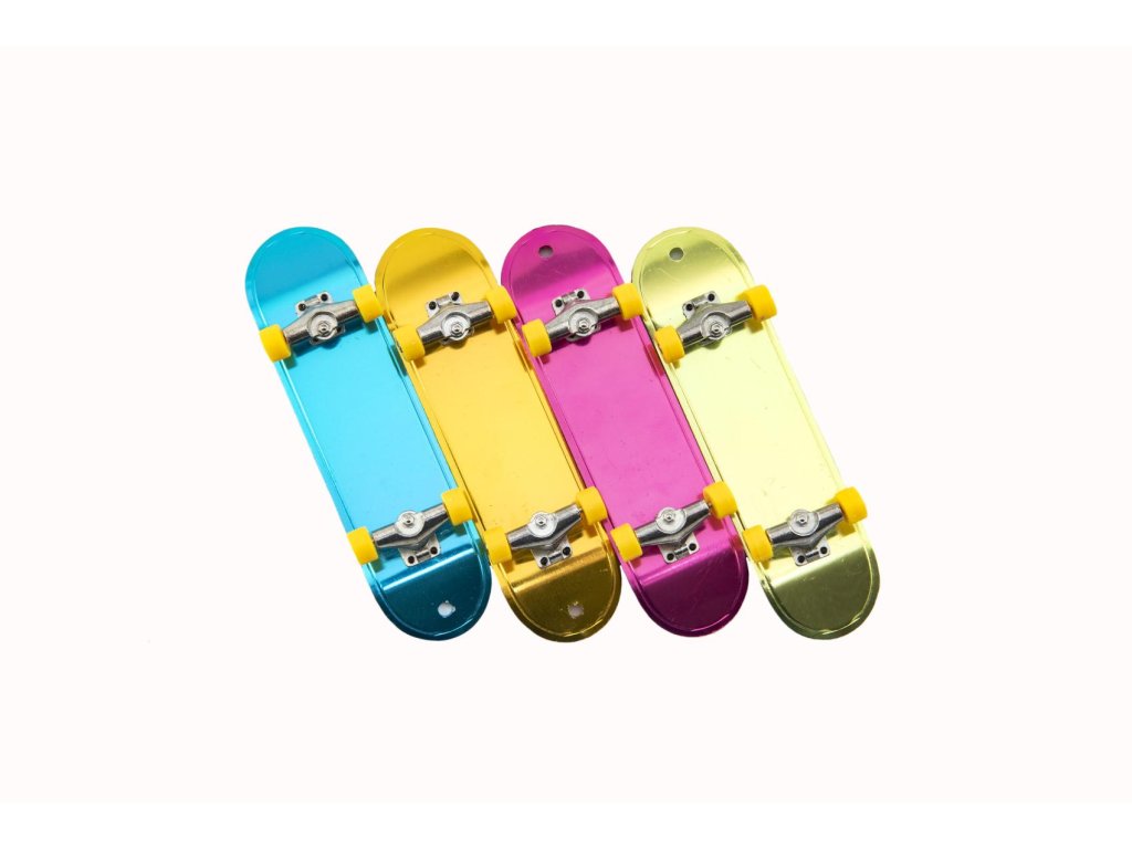Na skateboardu už se nemusí jezdit pouze venku. Dětský kovový skateboard na ovládání prstem v sadě s nástroji ke smontování. Výzva pro procvičení motoriky prstů. Zkouška nových triků může začít.