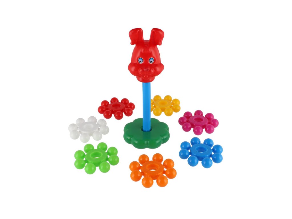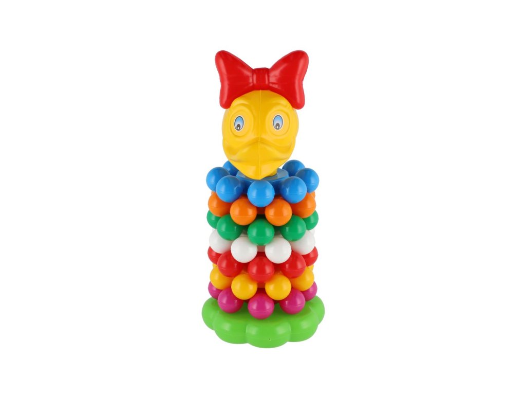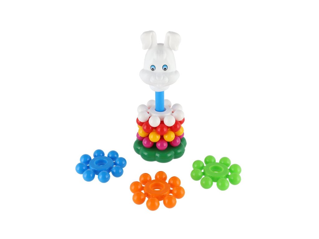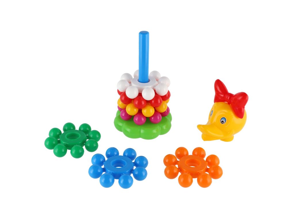 Skládanka s kroužky, ze které lze postavit pyramidu, si oblíbí každé dítě. Pyramida s barevnými kroužky pomáhá v rozvoji jemné motoriky a poznávání barviček. Velikost 26 cm. Vhodné od 12 měsíců.