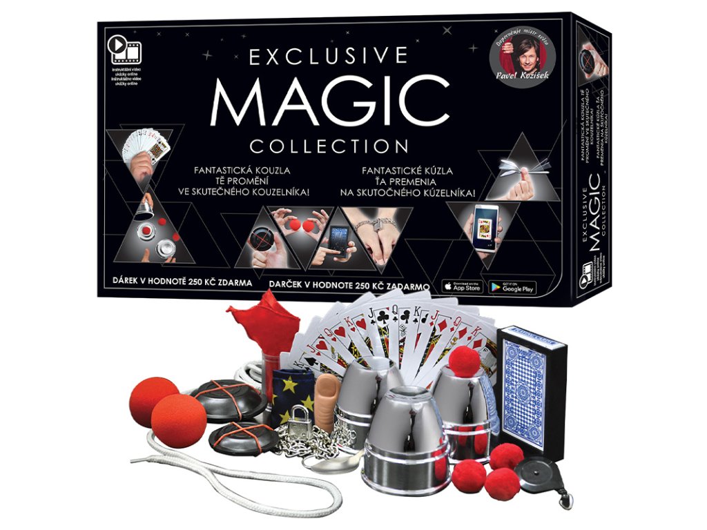 - Exkluzivní sada kouzel tě promění ve skutečného kouzelníka. - S knihou a popisem krok za krokem se naučíš kouzlit podle Pavla Kožíška. - Dárek v hodnotě 250 Kč zdarma v podobě vstupenky do Divadla kouzel. - Věk 8+