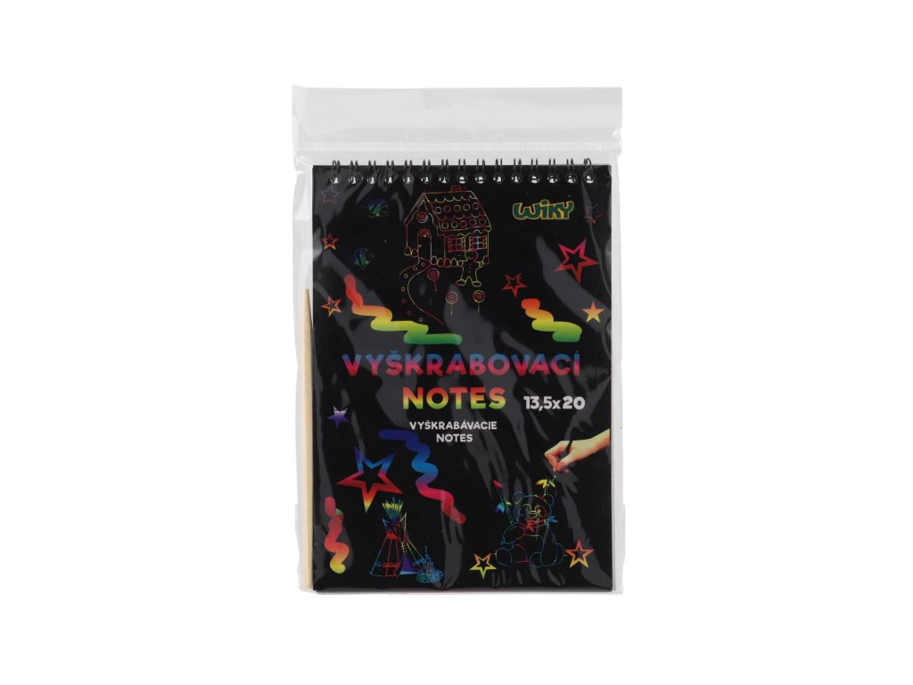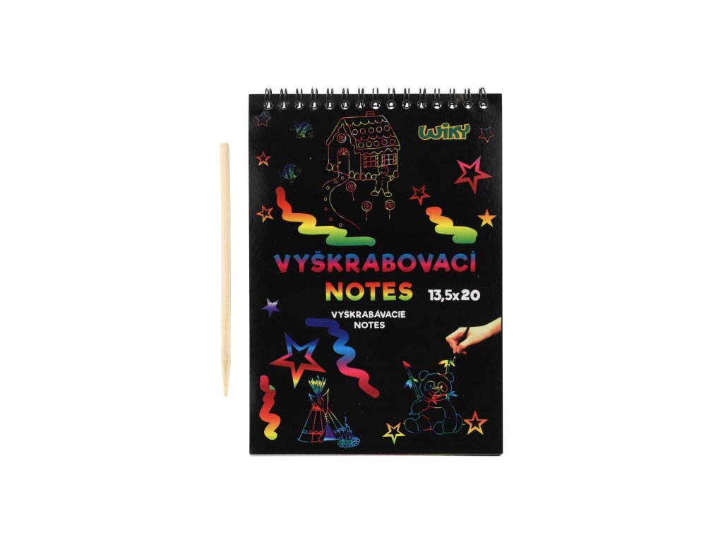 Kreativně se vydovádějte na vyškrabovacím notesu, který má rozměry 13,5x20 cm. Na jednotlivých listech, můžete pomocí vyškrabovacího pera vytvářet různé pestrobarevné obrázky.