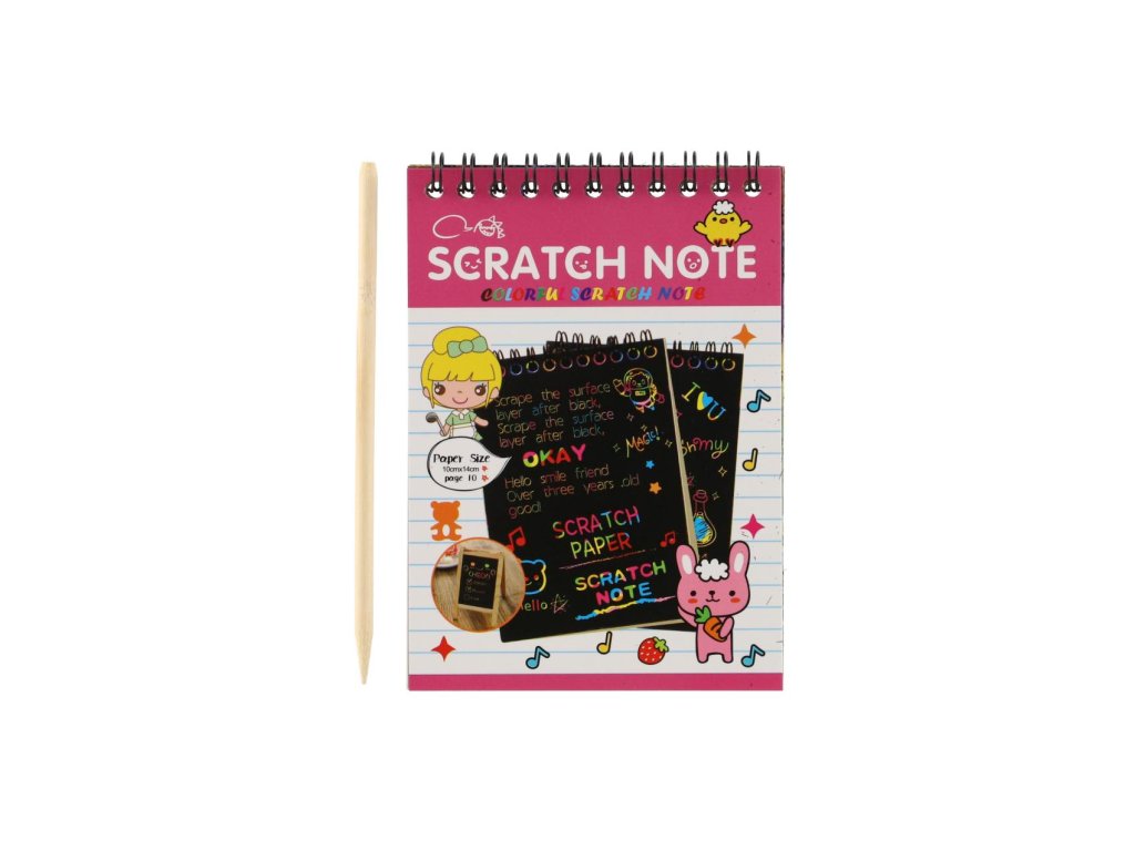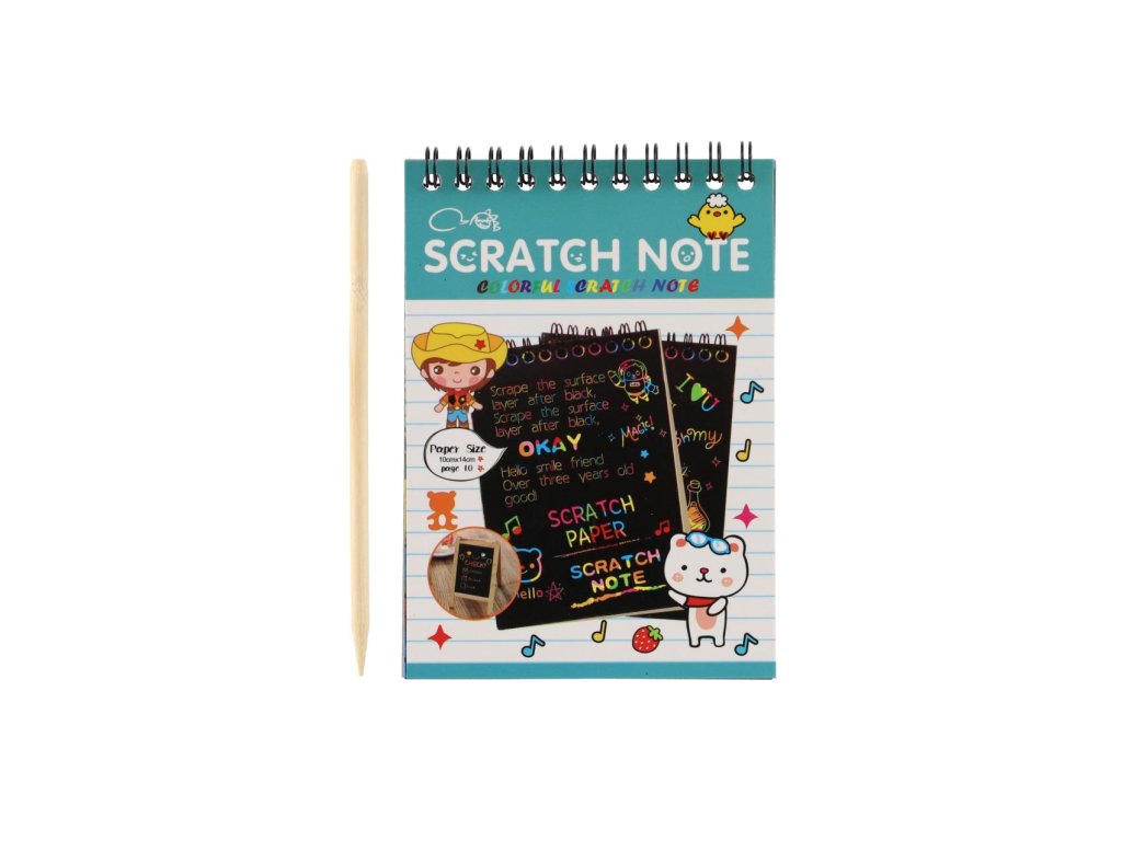 Děti se mohou kreativně vydovádějte na vyškrabovacím notesu. Na jednotlivých listech mohou pomocí přiloženého vyškrabovacího pera vytvářet různé pestrobarevné obrázky.