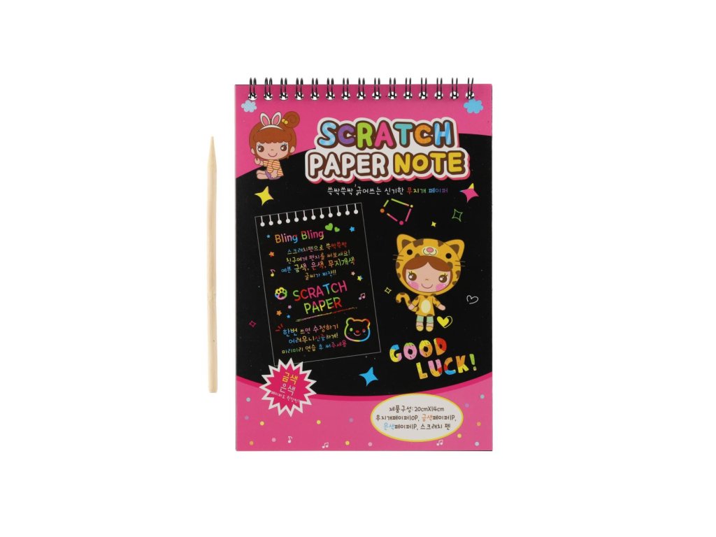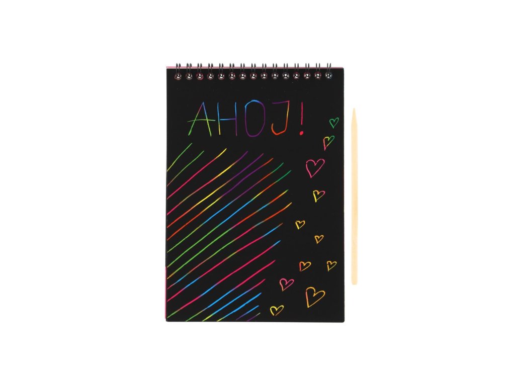 Děti se mohou kreativně vydovádějte na vyškrabovacím notesu. Na jednotlivých listech mohou pomocí přiloženého vyškrabovacího pera vytvářet různé pestrobarevné obrázky.