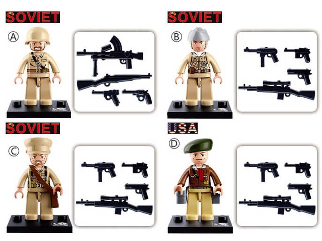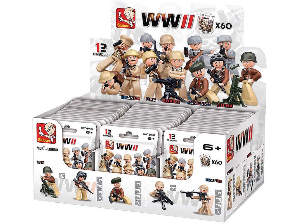 SLUBAN M38-B0580 Akční plastové figurky vojáků s doplňky, v různých variantách provedení, z kolekce Armáda - Druhá světová válka, jako doplněk ke stavebnicím Sluban. Baleno v