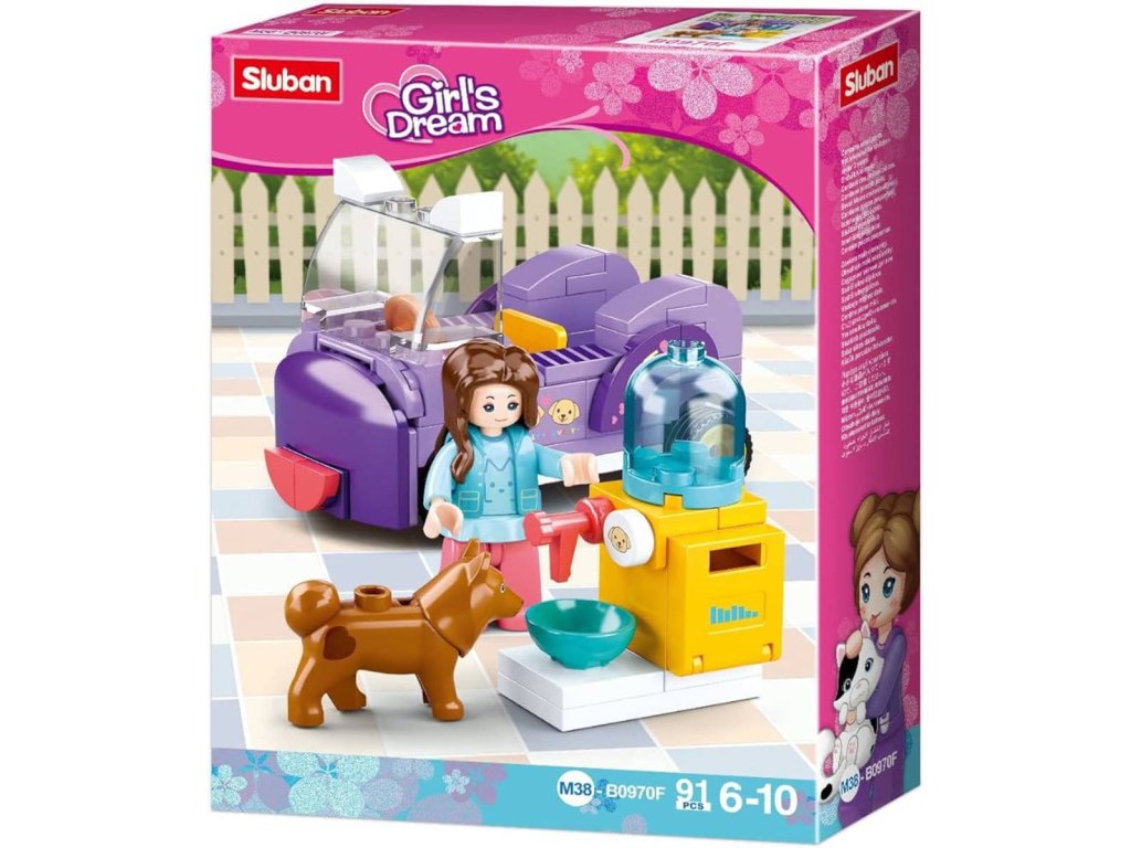SLUBAN Girls Dream (M38-B0970F) Auto s krmítkem pro pejsky. Kvalitní plastová stavebnice. Lze kombinovat s většinou ostatních známých stavebnic. Součástí 1 figurka.