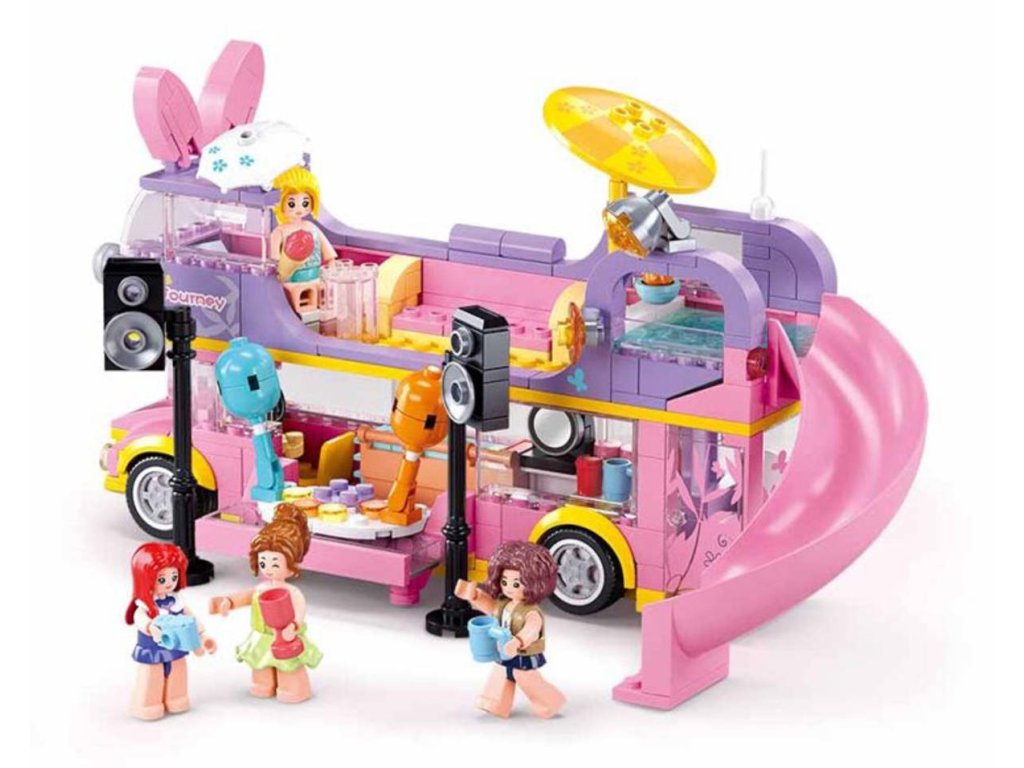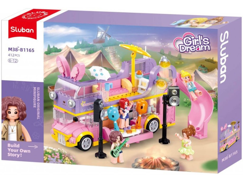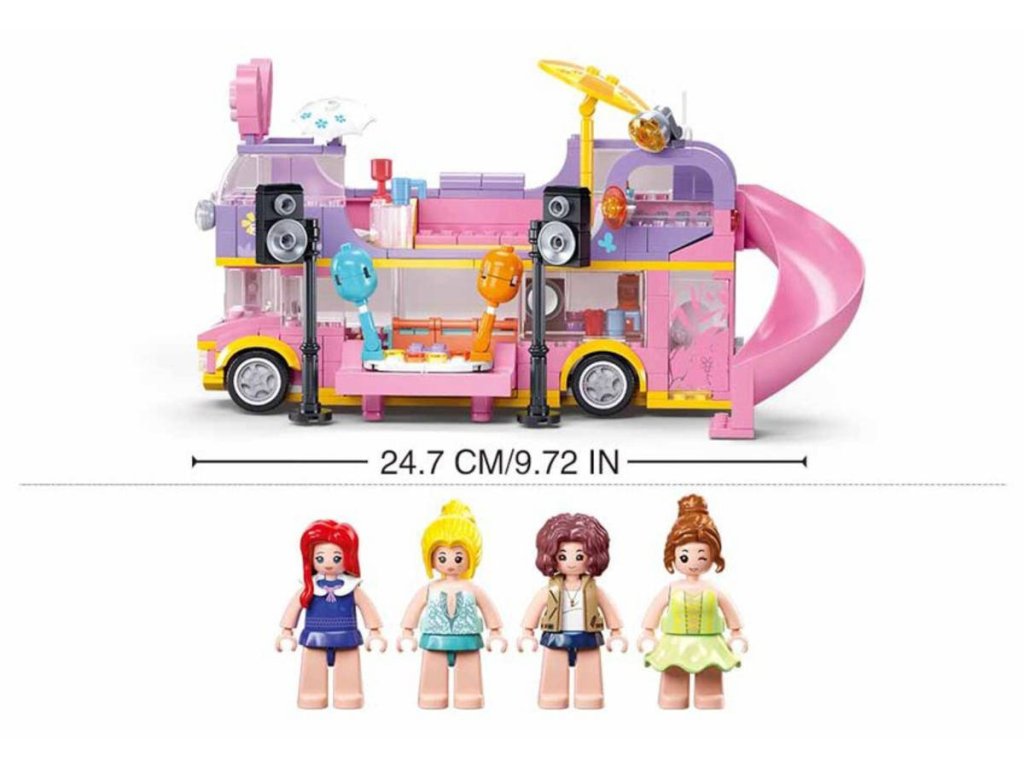 SLUBAN Girls Dream (M38-B1165) Hudební dvoupatrový obytný vůz. Kvalitní plastová stavebnice. Lze kombinovat s většinou ostatních známých stavebnic. Součástí 4 figurky.