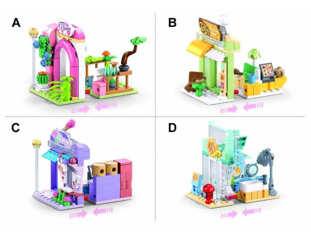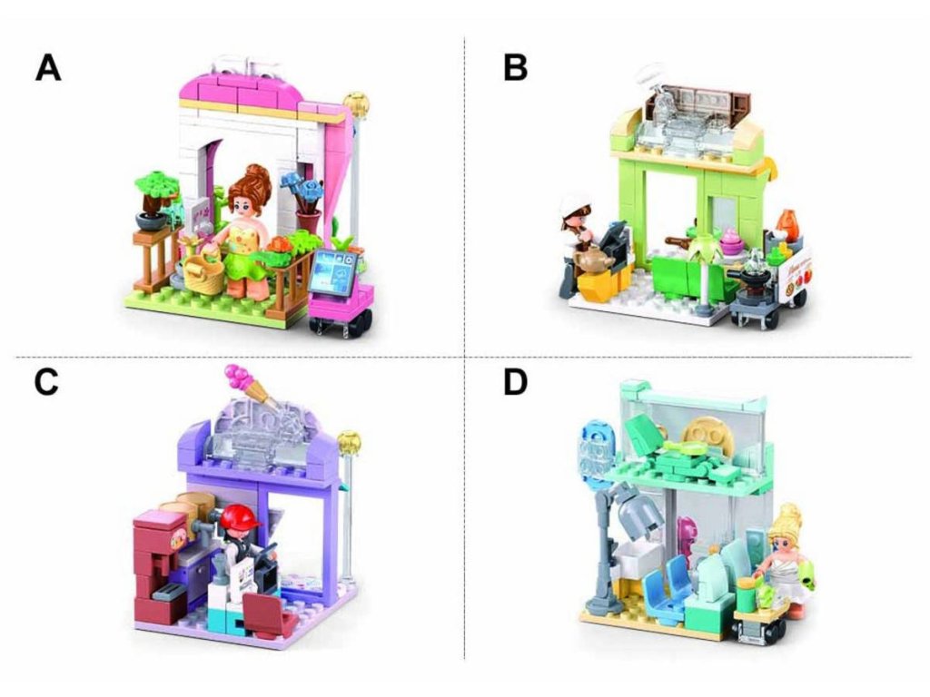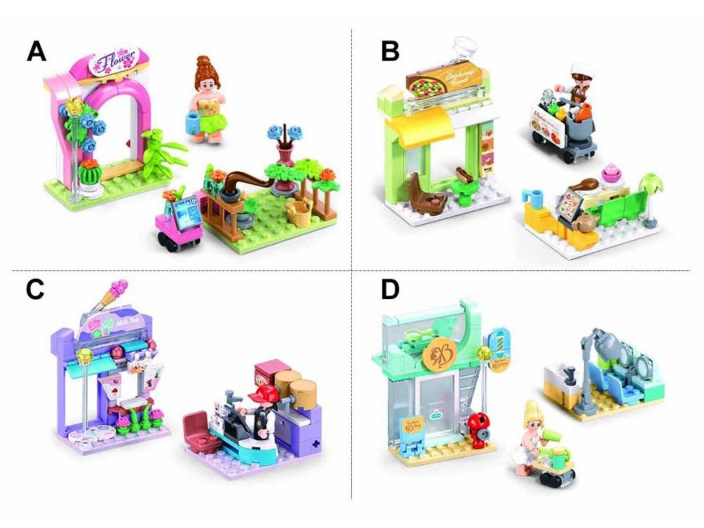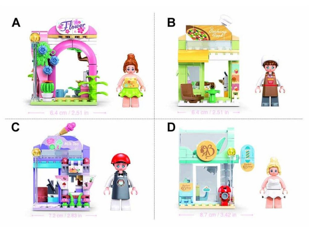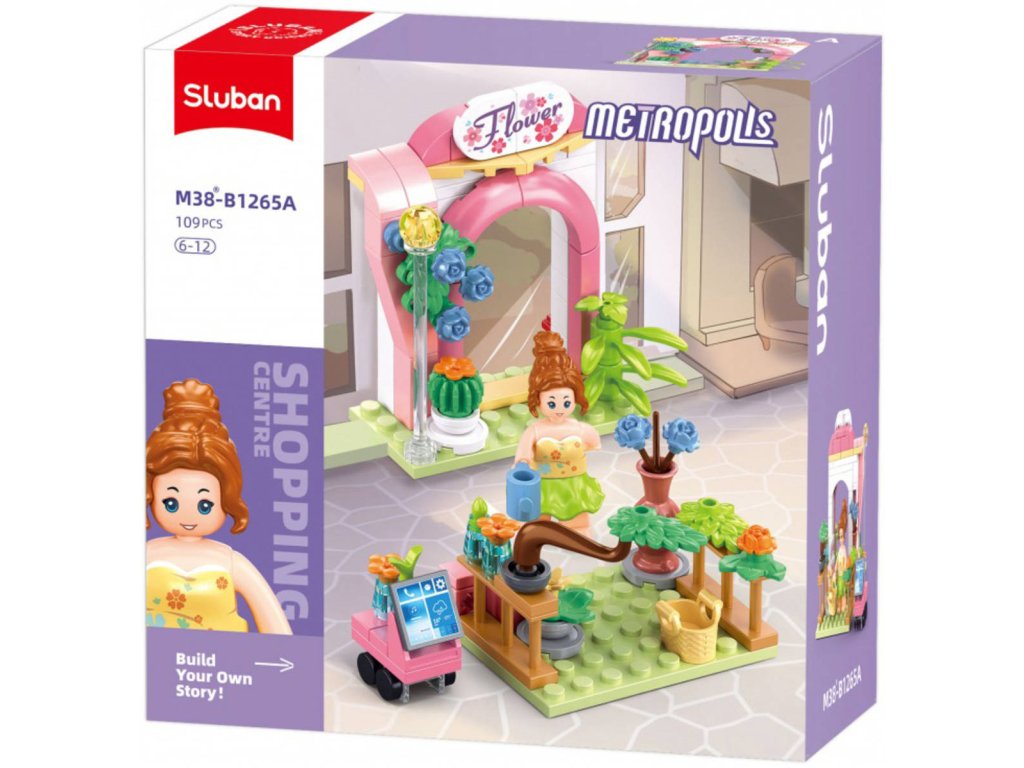 Stavebnice je ideální pro děti od 6 let, které se chtějí bavit s vytvářením vlastního obchodu. Po sestavení představuje květinářství o délce 6,4 cm a obsahuje figurku květinářky. Květinářství má barevný stánek plný květin a dekorativní oblouk, který dodává na atraktivitě. Součástí balení je také malý vozík na květiny, který umožňuje snadnou manipulaci s květinami. Tato stavebnice může být kombinována s dalšími produkty Sluban, jako jsou M38-B1265B Rychlé občerstvení, M38-B1265C Obchod s nápoji a M38-B1265D Kadeřnictví, což umožňuje vytvořit si vlastní obchodní scénu.