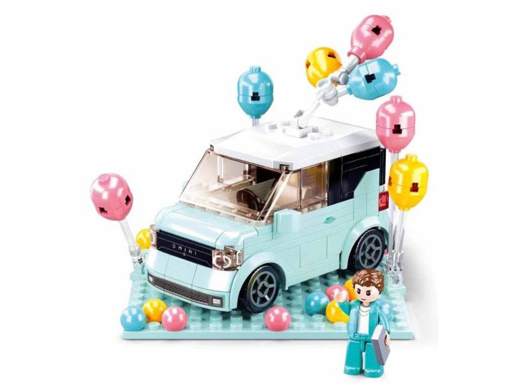 SLUBAN Mini Handcraft (M38-B1087) MiniQ Modrý vůz. Kvalitní plastová stavebnice. Lze kombinovat s většinou ostatních známých stavebnic. Součástí 1 figurka.