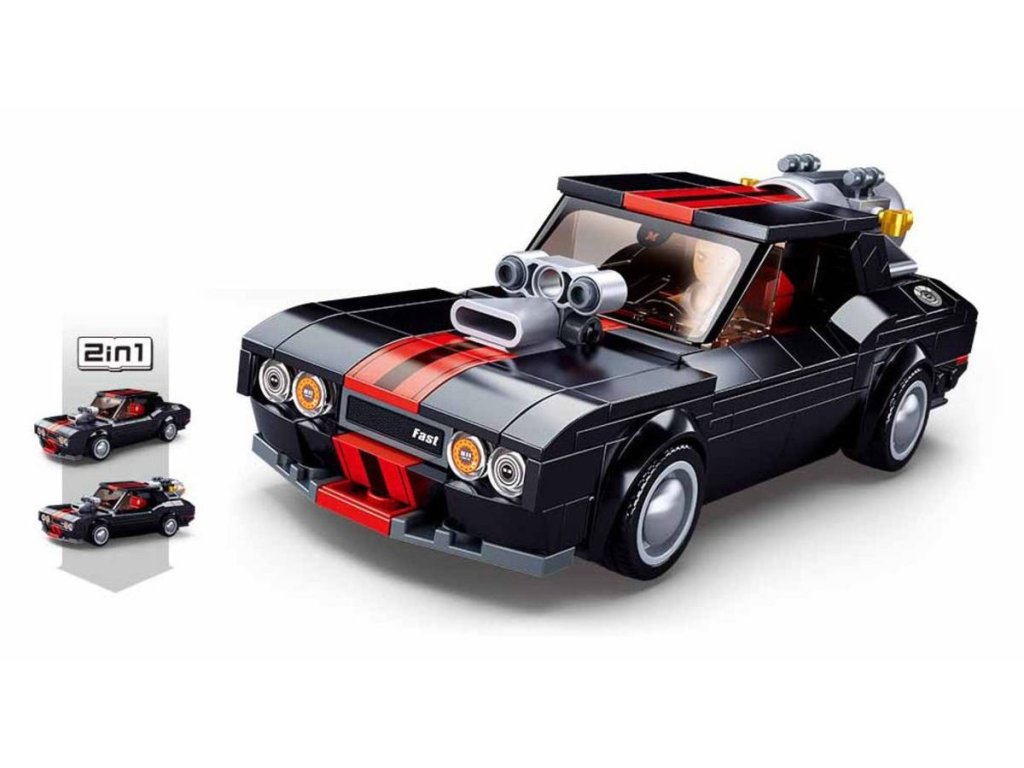 SLUBAN Model Bricks (M38-B1085) Pouliční závodní auto. Model auta. Kvalitní plastová stavebnice. Lze kombinovat s většinou ostatních známých stavebnic. Součástí 1 figurka. 2 modely. 2in1.