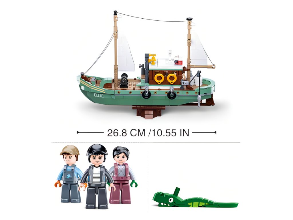 Rybářská loď Ellie je stavebnice z kolekce Sluban Model Bricks. Model rybářské lodí Ellie je po sestavení dlouhá více téměř 27cm. Je čas napnout plachty a vyrazit na širé moře. Stavebnice obsahuje tři figurky, tištěný návod a nálepky. Inovativní stavebnice Sluban je možno kombinovat s podobnými stavebnicemi mnoha dalších významných výrobců. Jsou vyráběny z kvalitního, nezávadného a odolného ABS plastu. Každá stavebnice je opatřena návodem k sestavení a balena v pestře potištěné papírové krabičce. Hlavní vlastnosti: 610 dílků, 3 figurkystřední obtížnostinovativní figurky s otáčivými i výkyvnými částmi tělkompatibilní se stavebnicemi dalších výrobců