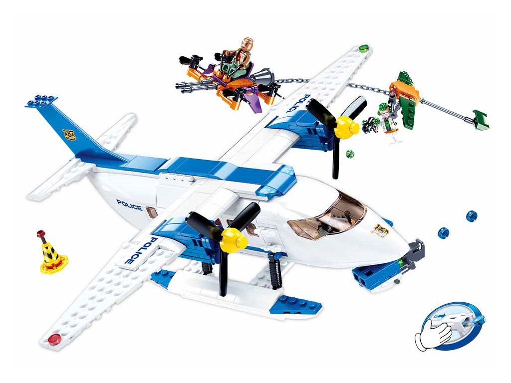 Hydroplán je po sestavení dlouhý 34cm. Je vybaven odnímatelnou střechou pilotní kabiny a kulometem na přídi. Inovativní stavebnice Sluban je možno kombinovat s podobnými stavebnicemi mnoha dalších významných výrobců. Jsou vyráběny z kvalitního, nezávadného a odolného ABS plastu. Každá stavebnice je opatřena návodem k sestavení a balena v pestře potištěné papírové krabičce. Hlavní vlastnosti: 380 dílků, 3 figurkystřední obtížnostinovativní figurky s otáčivými i výkyvnými částmi tělkompatibilní se stavebnicemi dalších výrobců