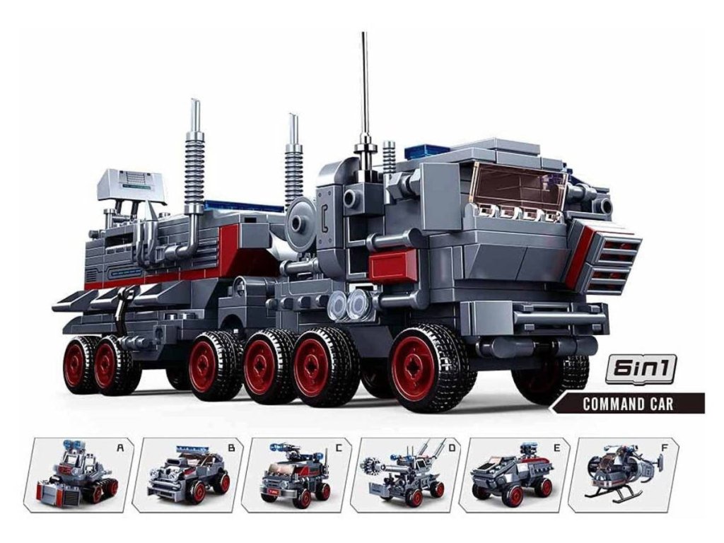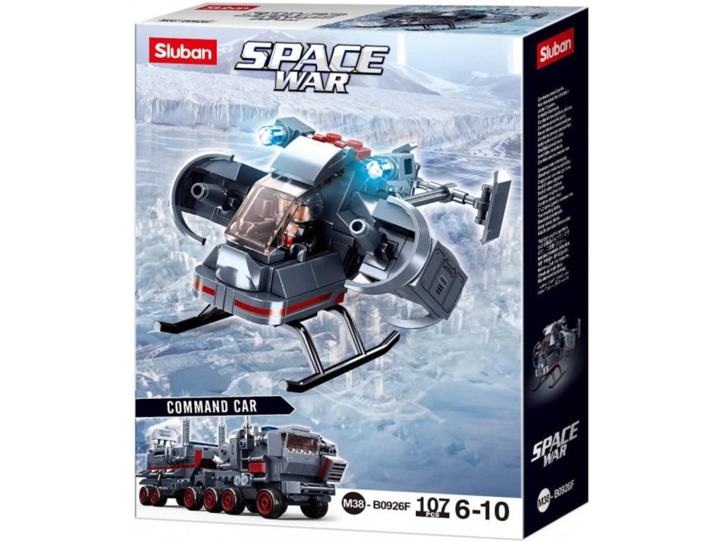 Hlídkový vrtulník je jedna ze šesti stavebnic Sluban série Space War 6in1. Těchto šest jednotlivých stavebnic je možné sestavit samostatně a nebo ze všech dílků dohromady jeden velký Velitelský vůz. Stavebnice obsahuje také jednu figurku a tištěný návod. Velitelský vůz po sestavení ze všech šesti stavebnic je dlouhý více než 23cm.