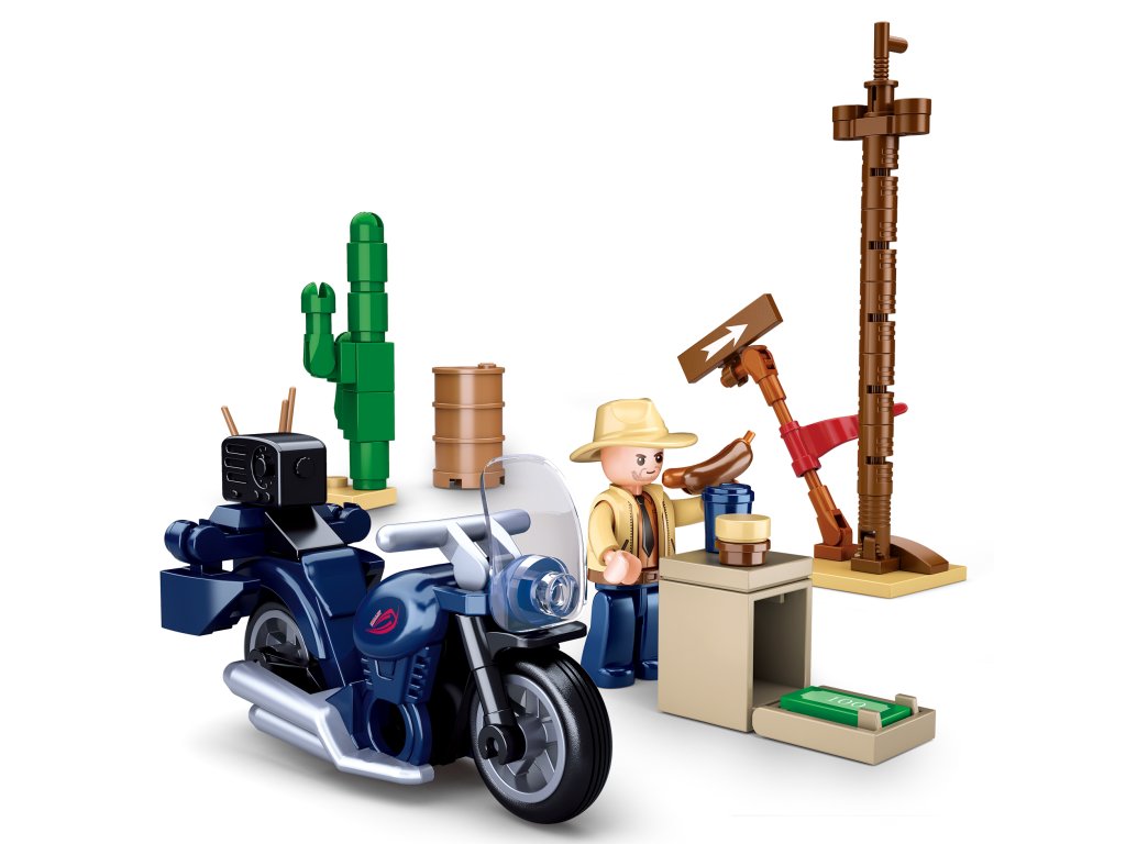 Inovativní stavebnice Sluban je možno kombinovat s podobnými stavebnicemi mnoha dalších významných výrobců. Jsou vyráběny z kvalitního, nezávadného a odolného ABS plastu. Každá stavebnice je opatřena návodem k sestavení a balena v pestře potištěné papírové krabičce. Hlavní vlastnosti:73 dílků, 1 figurkastřední obtížnostinovativní figurky s otáčivými i výkyvnými částmi tělkompatibilní se stavebnicemi dalších výrobců