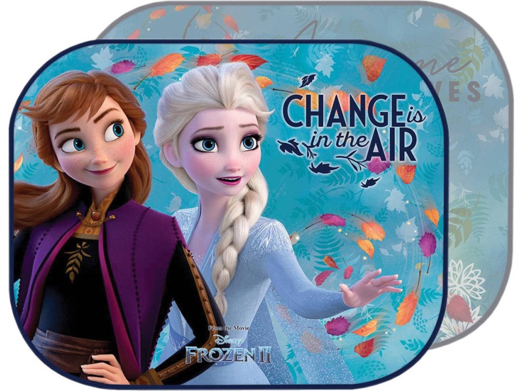 Dětská ochranná sluneční clona na boční nebo zadní sklo do auta, motiv Ledové Království 2 (Frozen). Brání pronikání slunečních paprsků do vozidla. Upevnění na přísavku. Součástí 2 clony.