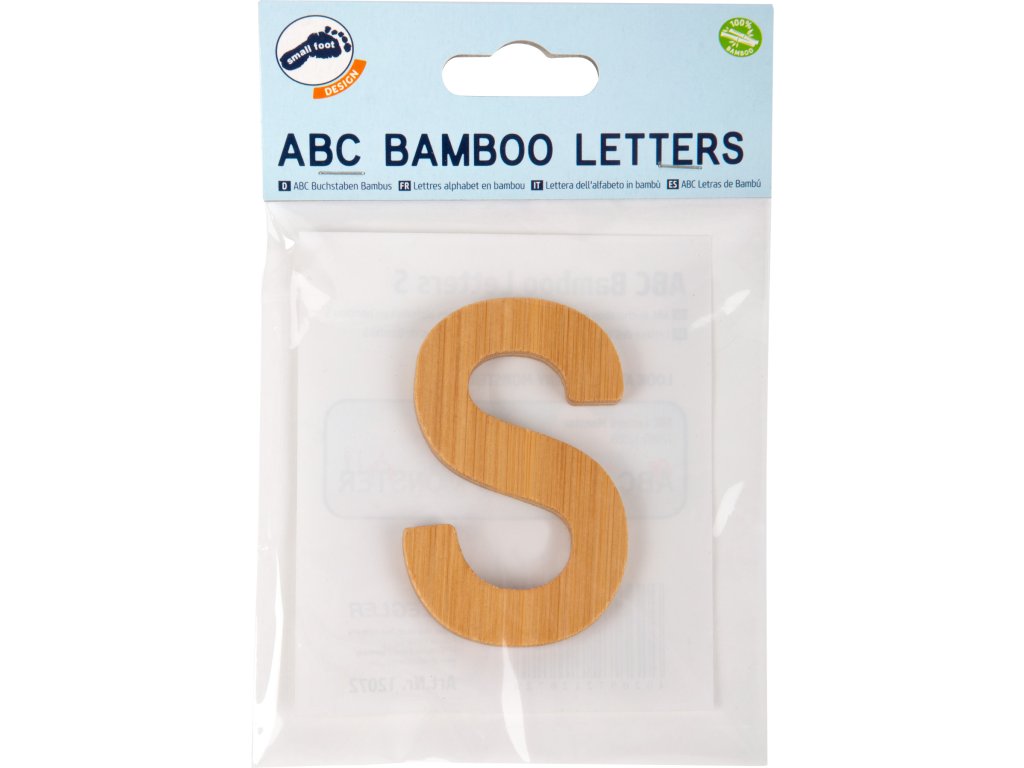 Trendy písmeno S abecedy od A do Z, vyrobené z bambusu z udržitelných zdrojů vhodné pro čtenáře začátečníky. Jeho zaoblené hrany jsou příjemné na dotyk. Je možno jej kombinovat s ostatními písmeny abecedy a ABC příšerkou Alem. Také krásná dekorace do dětského pokoje. Jednotlivá písmena můžete skládat do vět. Hlavní vlastnosti: dekorace do dětského pokojezaoblené hranyvhodné pro čtenáře začátečníky