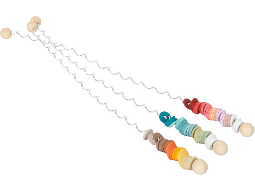 Cena je uvedena za 1 kus. Motiv zasíláme náhodně. Když se barevné dřevěné kroužky spouštějí po kovových spirálových drahách, vytváří fascinující vizuální přehlídku barev a jemný líbivý zvuk. Když se tyčová dráha neustále posouvá tam a zpět, ztvárňuje vizuální show, která je pro děti nejen strhující, ale i velmi uklidňující. Hlavní vlastnosti: trénuje koordinaci ruka-okouklidňující efekt - ideální pro usínání