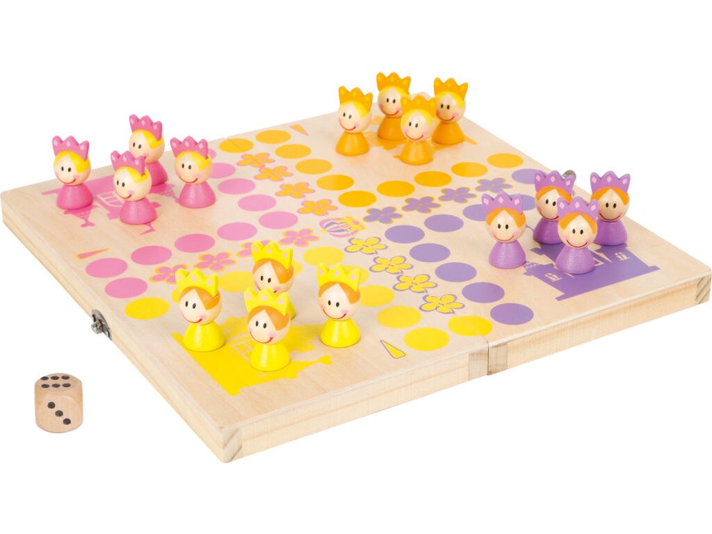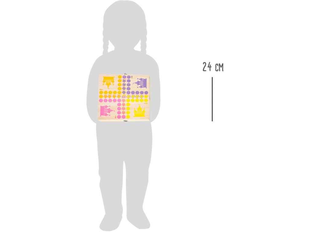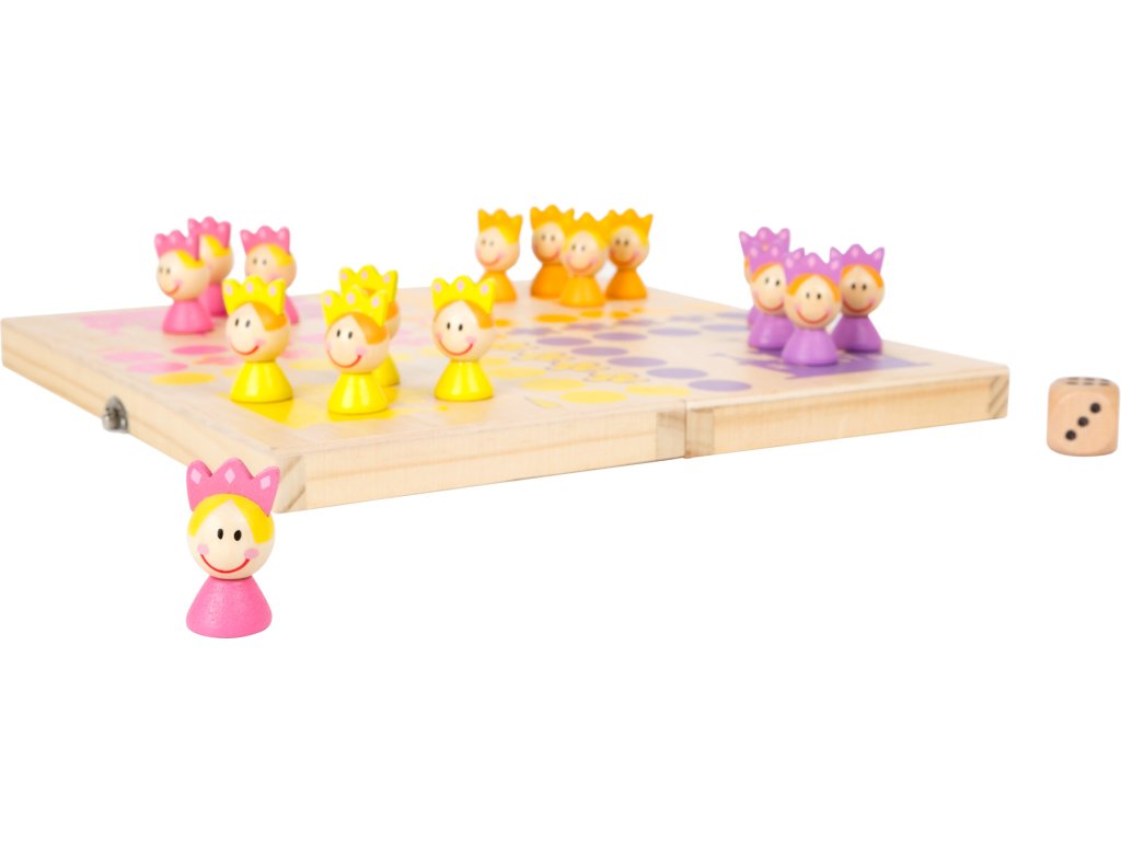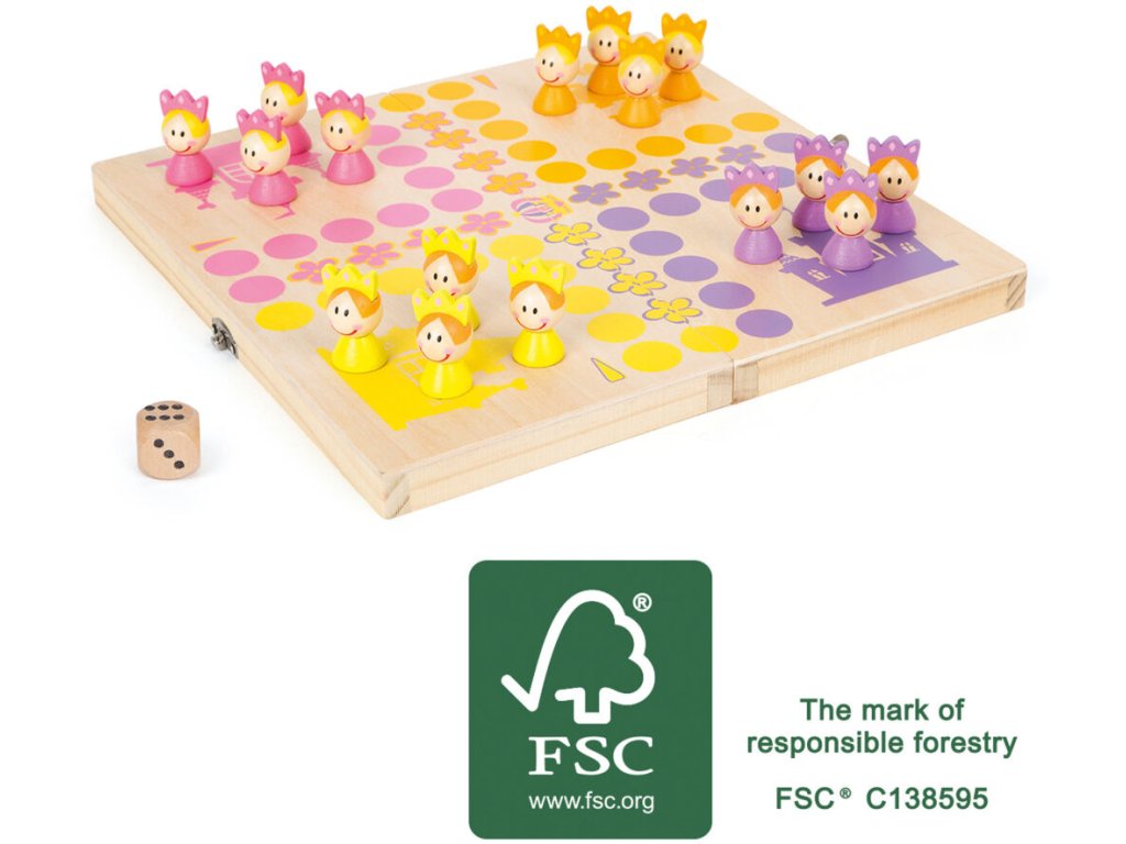 Která královská princezna dostane jako první svou korunu? Čtyři týmy různě barevných 3D princezen ze 100% FSC® certifikovaného dřeva čekají na svůj tah. Kostka ukazuje, o kolik polí se mají princezny pohnout. S touto hrou si děti potrénují porozumění číslicím a také sociální dovednosti. Hrací plocha jako krabička, do které můžete uzamknout herní dílky. Perfektní hra na cesty. Hlavní vlastnosti: 100% FSC® dřevo3D barevné postavičkyCestovní hra Značka a certifikát FSC® (Forest Stewardship Council) zaručuje, že dřevo, ze kterého byl produkt vyroben, nebylo vytěženo nelegálně a pochází z lesů obhospodařovaných šetrným či přírodě blízkým způsobem, ve kterém jsou dodržovány přísné environmentální a sociální požadavky. Značka FSC® na výrobku znamená, že svým nákupem pomáháte chránit lesy a podporujete šetrné, odpovědné či přírodě blízké hospodaření, díky kterému jsou naše lesy stabilnější, zdravější, mají přirozenou druhovou skladbu a lépe odolávají negativním následkům klimatických změn.