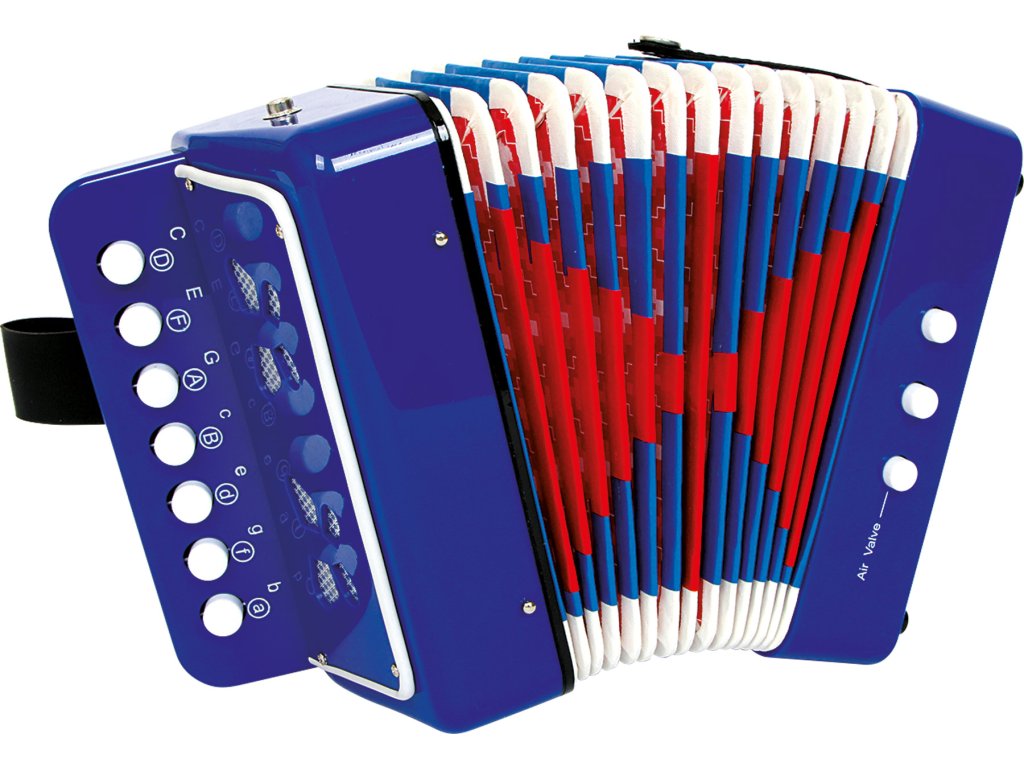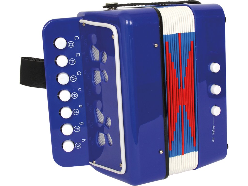 Hrát jako kdysi hrál dědeček. S touto modrou harmonikou mohou děti získat své první hudební zkušenosti a motivuje je k vlastní hudební produkci. Rozvíjí také hudební cit a učí rozeznávat tóny. Motýlci na bocích navíc upoutají pozornost a dodají tomuto dětskému nástroji ještě zajímavější vzhled. Vynikající jako příprava před systematickou výukou hry na skutečný hudební nástroj. Pozor, tato tahací harmonika není skutečný hudební nástroj, proto nemá profesionální zvuk. Hlavní vlastnosti: kvalitní zpracovánívelikost pro nejmenšíprohlubuje lásku k hudbě