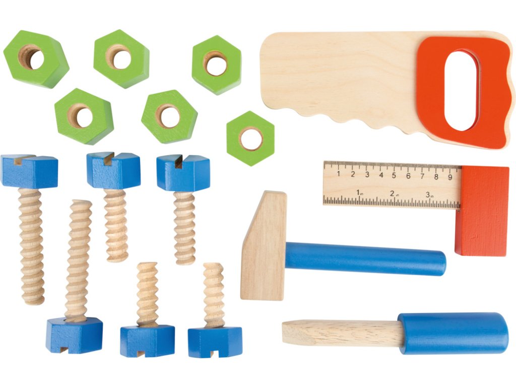 Malí řemeslníci si s tímto praktickým pracovním stolem rozvinou své jemné motorické dovednosti. S doplňky, jako jsou kladivo, šrouby, matice, šrouby a mnoho dalšího, se rozhodně nebudou nudit. Budou nadšeni tímto skvělým pracovním stolem s velkou pracovní plochou. Dětské ruce mohou trénovat jemnou motoriku při zatloukání, šroubování, měření a řezání. Pracovní stůl je pevně přišroubován a šroubová svorka drží obrobky. Je to jen malý krůček k práci s tatínkem nebo dědou v jejich hobby pokoji. Hlavní vlastnosti: dřevěný ponk včetně vybavenípodporuje kreativitu a představivostrozvíjí jemnou motoriku a zručnostinspiruje ke kreativní a představivé hře