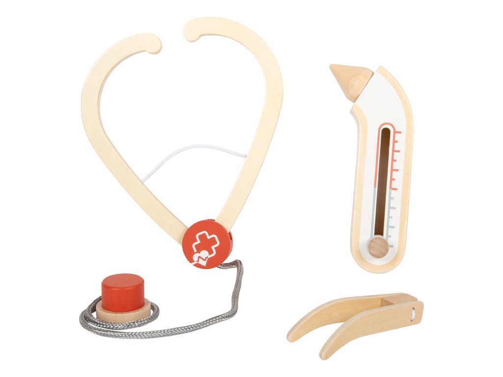 Pro malé lékaře a jejich velké mise! Tato praktická sada pro děti promění každou hru v opravdovou lékařskou návštěvu. Součástí je pevná látková taška se zipem a pohodlnými rukojeťmi, ideální pro přenášení, a bohatá kolekce kvalitních dřevěných hraček: stetoskop, zasouvací injekční stříkačka, teploměr s nastavitelným ukazatelem, pinzeta, špachtle, obvaz se suchým zipem a popisovatelné karty pacienta s fixou. Děti mohou naslouchat tlukotu srdce plyšového medvídka, aplikovat injekci panence nebo měřit horečku - možnosti hry jsou nekonečné. Pohyblivé části, jako zasouvací stříkačka a nastavitelný teploměr, podporují kreativitu a rozvoj koordinace. Taška je lehká a snadno se přenáší, perfektní pro hraní doma, v herně, na cestách nebo ve školce. Realistické prvky povzbuzují děti k objevování pečovatelských rolí, trénování jemné motoriky a zkoušení sociálních dovedností. Sada zároveň rozvíjí řeč, empatii a porozumění lidskému tělu a zdraví. Ideální pro přípravu na skutečné návštěvy u lékaře, nebo prostě pro zábavné hraní rolí s panenkami, kamarády či sourozenci. Hlavní vlastnosti: lékařská taška s rozsáhlým zdravotnickým materiálem ze dřeva obsahuje: injekční stříkačka, teploměr, zapisovatelná karta včetně popisovače, stetoskop, obvaz, špachtle a pinzetaodolná látková taška se zipem - kompaktní a přenosnáideální pro hraní rolí, sociální rozvoj a motorické dovednosti k dispozici ve dvou barevných variantách: šalvějově zelená a červená