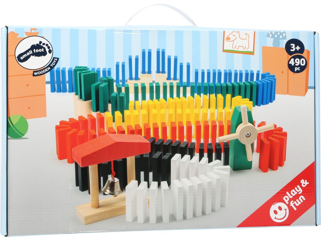 Veselá domino dráha zajišťuje zábavu pro malé i starší děti. Se 490 různými barevnými domino díly vyrobenými ze dřeva lze vybudovat rušnou domino dráhu. Další doplňky ze dřeva zvyšují úroveň obtížnosti. Nakonec na poslední domino čeká zvoneček. Zde se z malých stavitelů stávají velcí budovatelé, kteří mohou rozvíjet soustředění a mohou popustit uzdu své kreativitě a fantazii. Hlavní vlastnosti: obsahuje 490 ks hracích dílůpestrobarevné provedenírozvíjí logické myšlení, zručnost a trpělivost