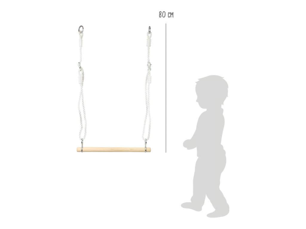 Je to hrazda, je to houpačka? Obojí! Na visuté hrazdě se mohou malí akrobaté nejen houpat, ale také shýbat a jinak cvičit gymnastiku. Takovéto hry významně přispějí jejich kondici, síle i obratnosti, a to zvláště pokud spolu budou moci ve skupině soutěžit. Odolná lana jsou na koncích opatřena kovovými kroužky k zavěšení. Výšku lze kdykoli snadno upravit pomocí kovových průvlaků. Hlavní vlastnosti:jednoduché nastavení délkynosnost 100 kgodolné provedení