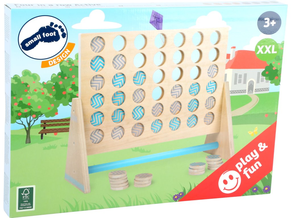 Klasická hra „Čtyři v řadě“ vyrobená ze 100% certifikovaného FSC® dřeva. Velikost XXL zaručuje zábavu pro děti i dospělé. Hra zkusí vaši soustředěnost a logické myšlení, dokážete do řádku umístit 4 dílky stejné barvy za sebou? Dílky jsou dost velké na to, aby je děti mohly pohodlně uchopit. Ideální domů i ven. Kdo se stane vítězem? Hlavní vlastnosti: FSC dřevotrénuje soustředěnost a logické myšlení Značka a certifikát FSC® (Forest Stewardship Council) zaručuje, že dřevo, ze kterého byl produkt vyroben, nebylo vytěženo nelegálně a pochází z lesů obhospodařovaných šetrným či přírodě blízkým způsobem, ve kterém jsou dodržovány přísné environmentální a sociální požadavky. Značka FSC® na výrobku znamená, že svým nákupem pomáháte chránit lesy a podporujete šetrné, odpovědné či přírodě blízké hospodaření, díky kterému jsou naše lesy stabilnější, zdravější, mají přirozenou druhovou skladbu a lépe odolávají negativním následkům klimatických změn.