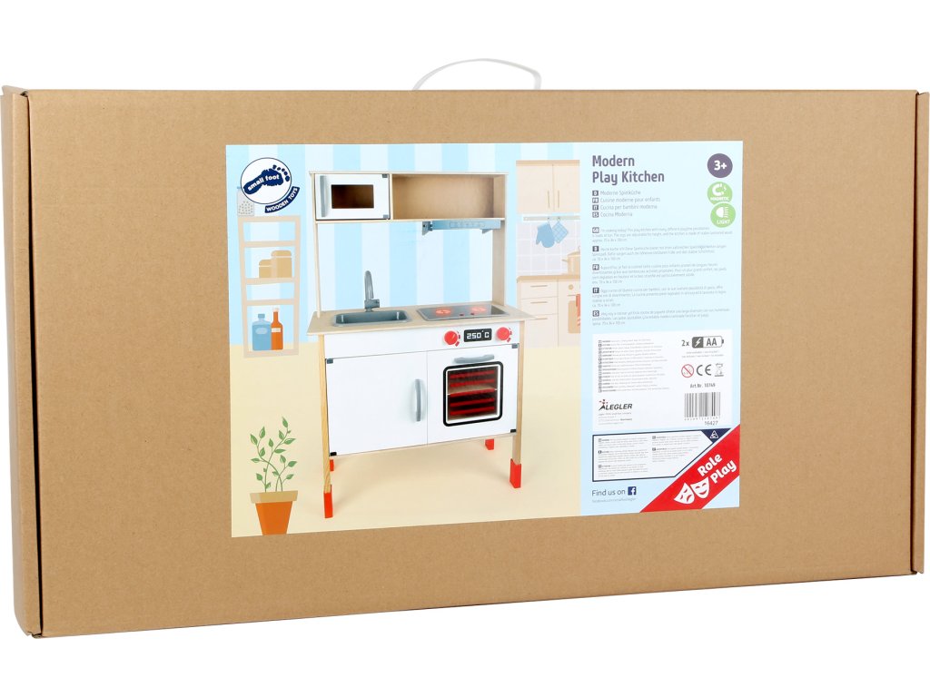 Dnes vařím já! Tato hrací kuchyňka má mnoho různých možností hraní. Kuchyňka má výškově nastavitelné nohy a je vyrobena ze stabilního laminovaného dřeva. Baterie nejsou součástí balení. Drobné detaily, jako je dřez s interaktivní baterií, sporák, který se po stisknutí tlačítka rozsvítí, trouba s otočnými knoflíky a malý odsavač par, nabízejí spoustu zábavy na hraní. Za dvířky skříněk je spousta místa pro vše, co malí kuchaři potřebují. Hlavní vlastnosti: otočné knoflíky, magnetická dvířka, svítící sporákvýškově nastavitelné nohy kuchyňkybaterie nejsou součástí balenípodporuje hraní rolí a sociální dovednosti