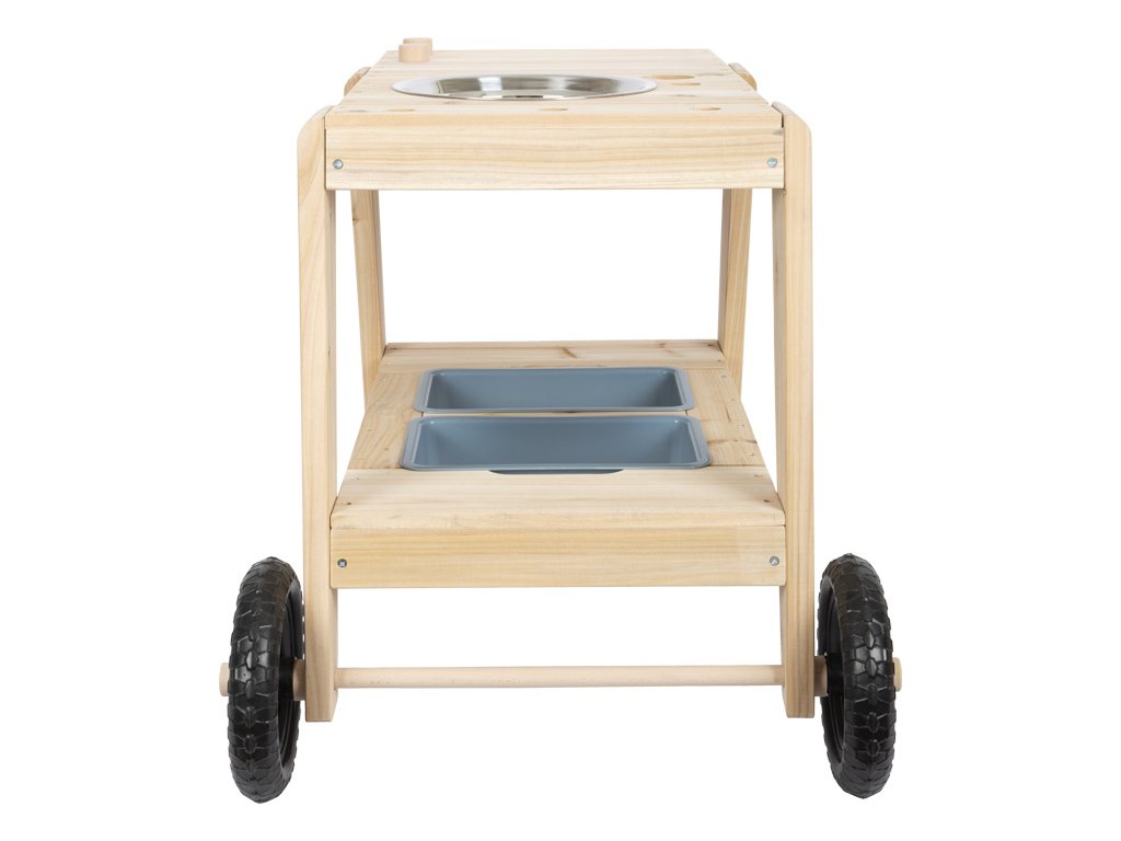 Máchání, vaření a stavění z vody a písku! Tato venkovní „letní“ kuchyňka na hraní je ideální na malou zahradu, terasu nebo balkon. I přes kompaktní rozměry nabízí kuchyňka dostatek prostoru pro kreativní hru. Dodává se se dvěma odnímatelnými miskami, které dokážou rozehrát celý stavební a kulinářský proces. Varná deska je opatřena otočnými knoflíky a řadou otvorů, které můžou posloužit například jako otvor pro vodní hadici. Díky robustním kolečkům lze kuchyňku snadno přemisťovat. Hodí se jako doplněk nebo alternativa pískoviště a k výrobě nejroztomilejších „pískových“ báboviček a dalších pochoutek. Hlavní vlastnosti: ideální pro malou zahradu, terasu nebo balkonpraktické zapuštěné otvory pro hračky na písek či hadici na voduopatřeno kolečky, snadno přemístitelnéneošetřené dřevo vhodné k osobitým úpravám a lakování