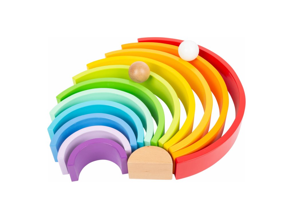 Barevná zábava zaručena! Duha včetně 2 dřevěných kuliček je vyrobena z odolného dřeva v pestrých barvách. Složená duha patří na každou polici v pokojíčku, má mnoho variací skládání a hraní. Z duhy lze vytvořit také dráhy pro kuličky, vysoká věž nebo houpačka pro plyšáky. Je všestranná a podporuje tvořivost dětí. Která barva je nejkrásnější? Hlavní vlastnosti: Rozvíjí motoriku dítětePoužívá se v MontessoriKvalitní zpracování dřeva