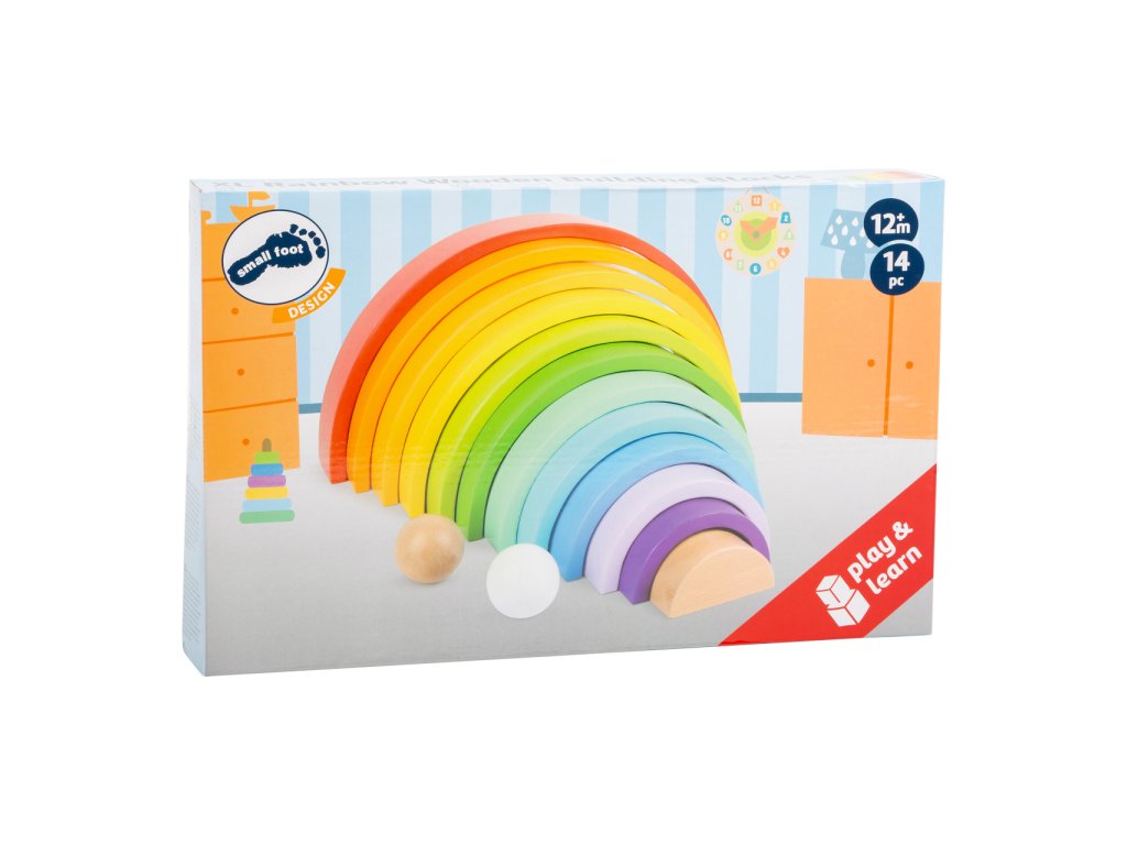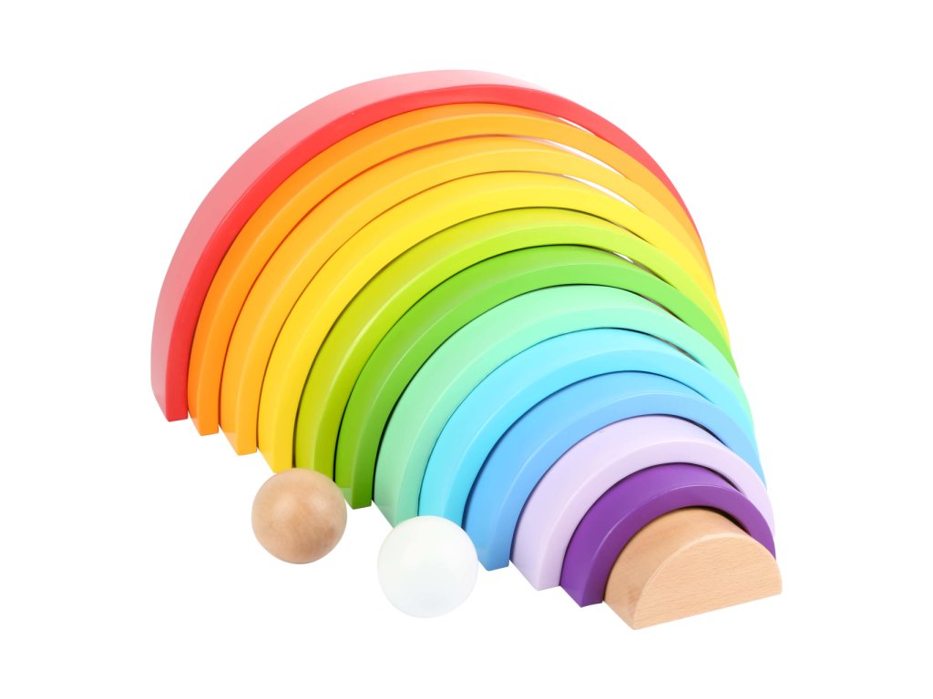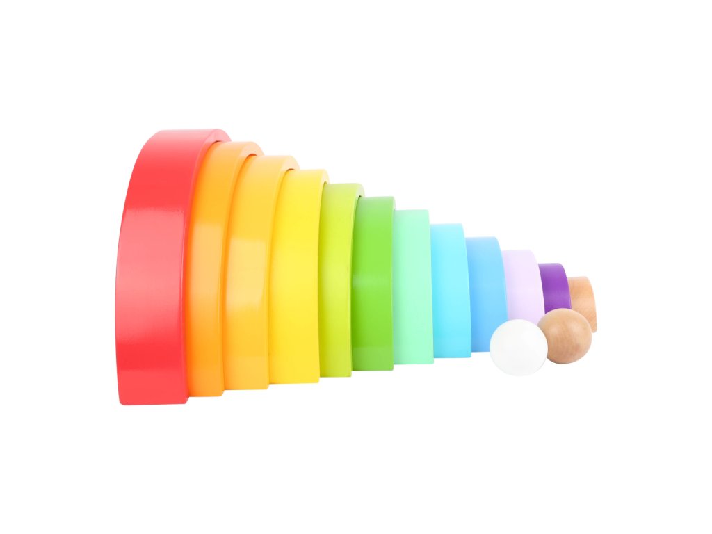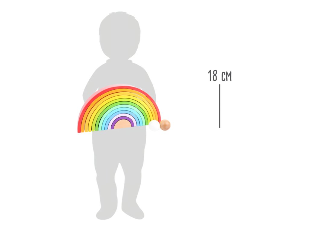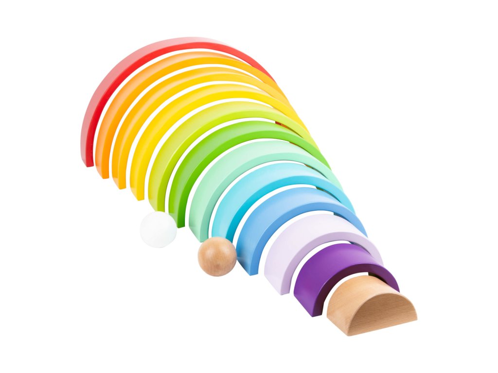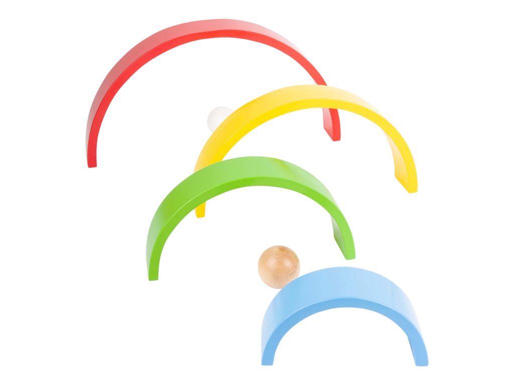 Barevná zábava zaručena! Duha včetně 2 dřevěných kuliček je vyrobena z odolného dřeva v pestrých barvách. Složená duha patří na každou polici v pokojíčku, má mnoho variací skládání a hraní. Z duhy lze vytvořit také dráhy pro kuličky, vysoká věž nebo houpačka pro plyšáky. Je všestranná a podporuje tvořivost dětí. Která barva je nejkrásnější? Hlavní vlastnosti: Rozvíjí motoriku dítětePoužívá se v MontessoriKvalitní zpracování dřeva